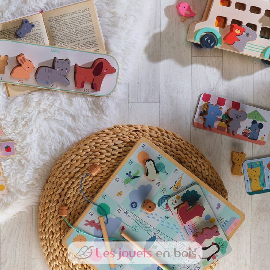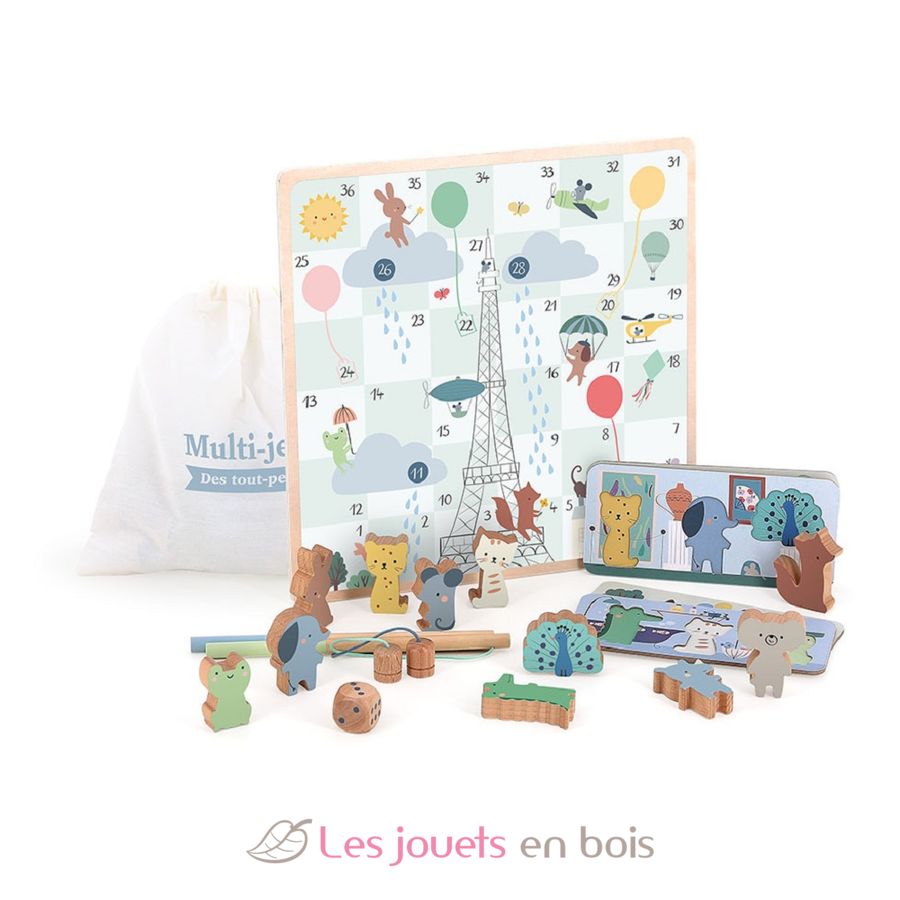 The adorable wooden animals in this wooden multi-game set, illustrated by Sarah Betz, will delight your child from 2 years old!