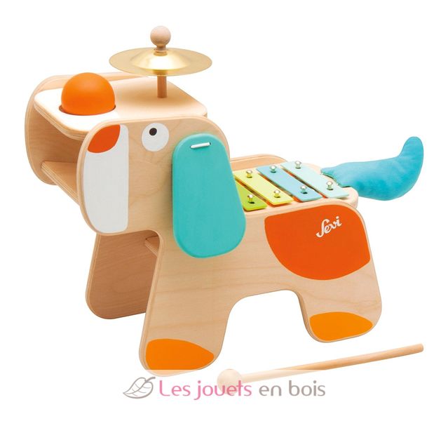 Music center Dog, playfully fosters children’s musical development and encourages a sense of rhythm. There’s music in the air – Music center Dog is here! Children are enthralled by his exciting instruments : metallophone, cymbal or bell hidden in the dog's tail.