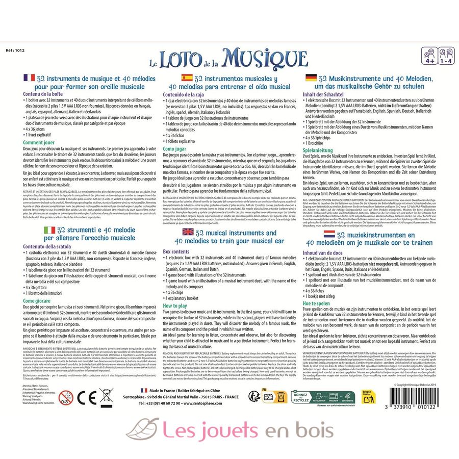- 1 case with 32 musical instruments to recognise and 40 pairs of instruments playing melodies that can be recognised by the instruments ;
