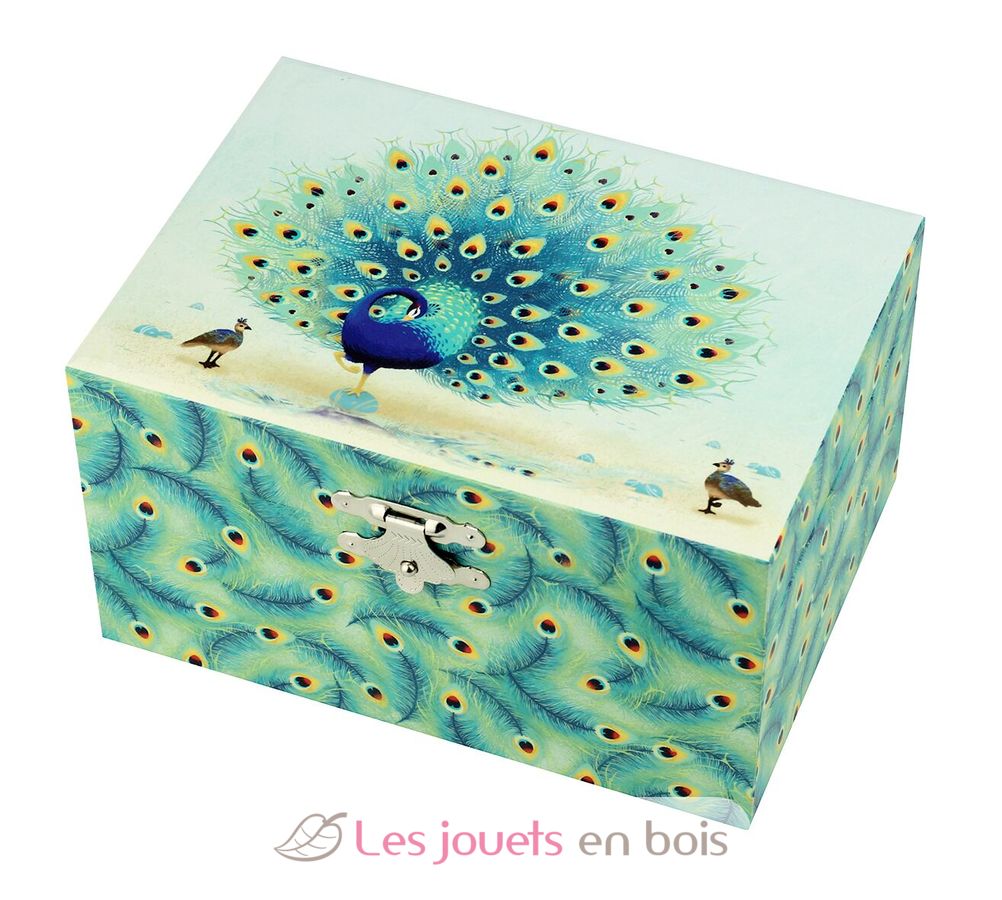 This box, made of solid cardboard, has a large compartment for small secrets and a mirror. The ballerina turns on itself when music is triggered, when the box is opened.