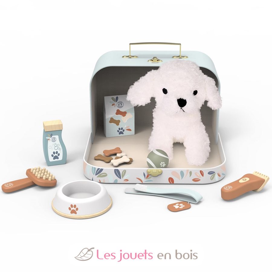 Children will have everything they need in this beautifully designed suitcase to take care of their favorite dog plush (included).