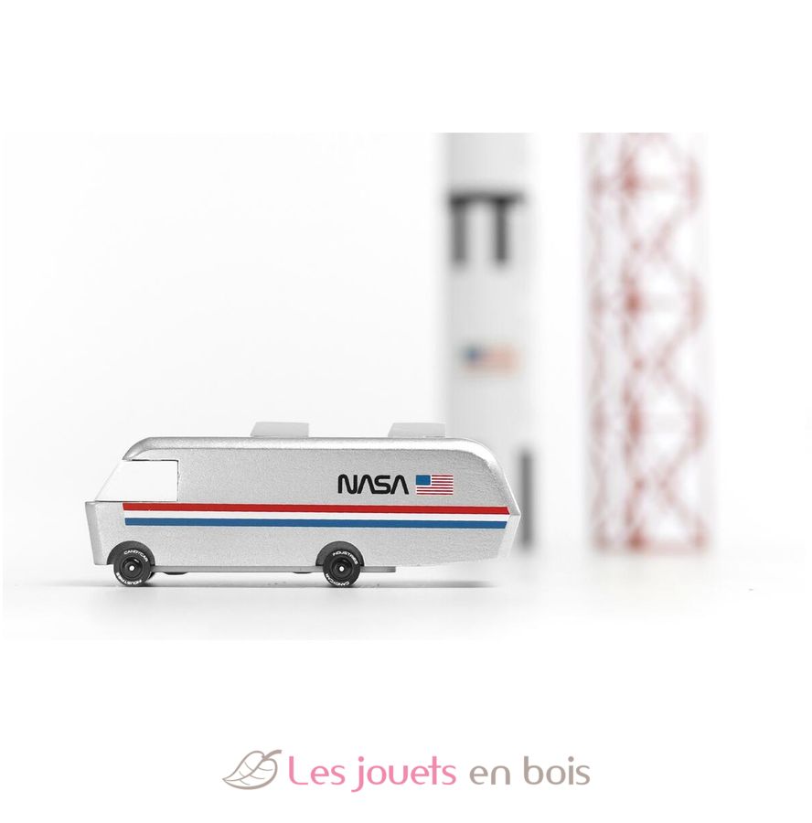Vehicle in beech wood, non-toxic water-based paint, white polymer rims (ABS) and rubber tires. Dimensions: 13,5 x 4,1 x 4,6 cm.