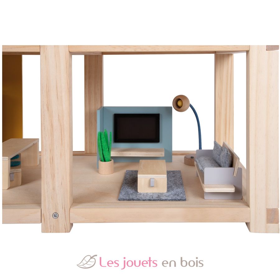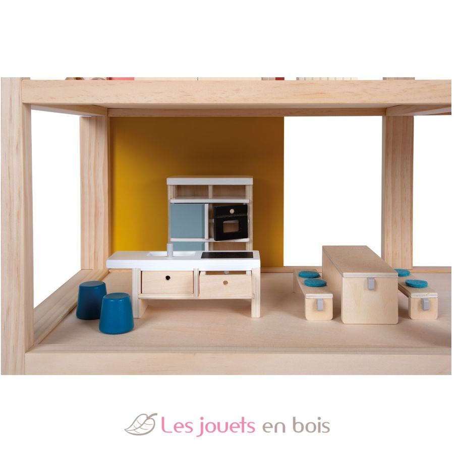 Natural doll house with furniture, a wooden dollhouse made by Small foot.