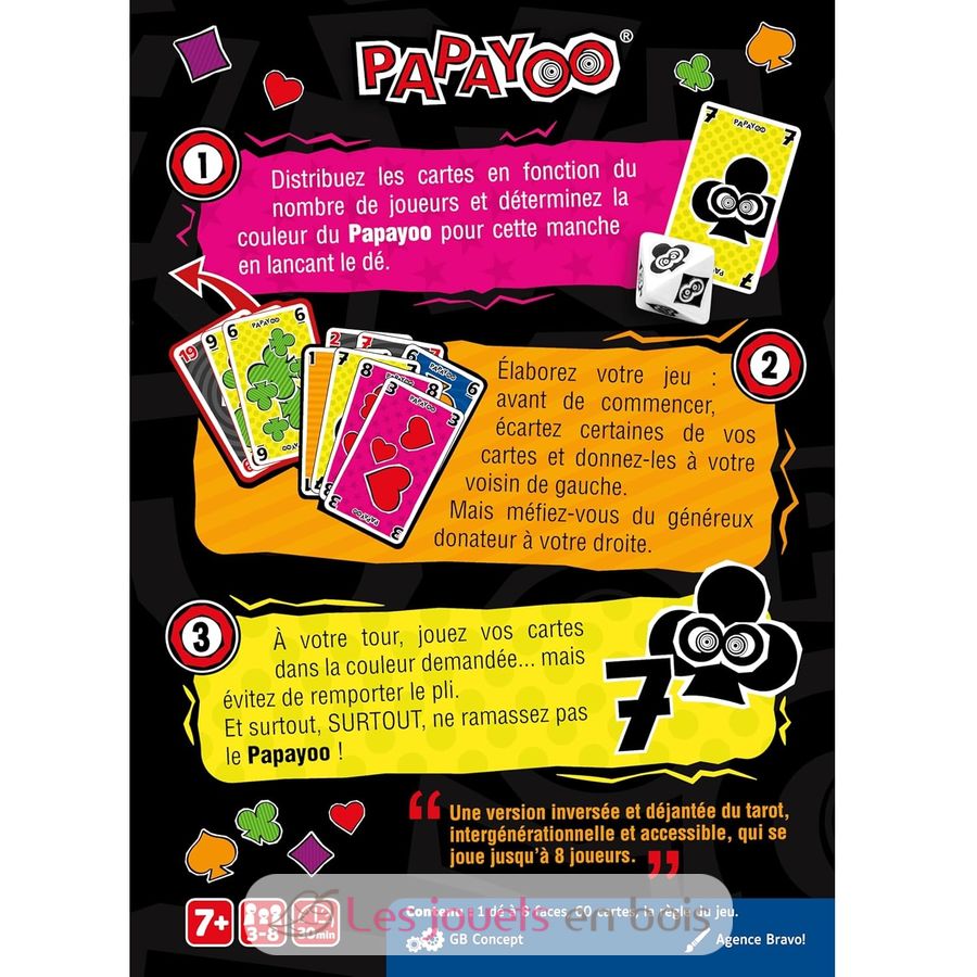 In this card game, there are no jacks, queens or kings, but a fifth suit, called Payoo, plus a funny dice. How to score as few points as possible? By avoiding harvesting those pesky Payoos and especially the Papayoo, that pesky 7 whose color changes (damn dice!) with each round… You are not satisfied with the deal? No big deal, you give cards to your left before you start. But make the right choices, because they will be replaced by the “gift” coming from the right… Then you play the deal but without trumps and without scruples, not sure that the best wins!