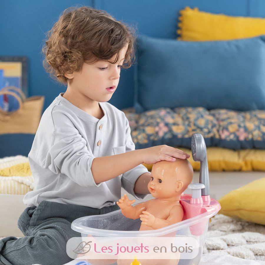 This very realistic doll sits up on its own. It can go into the water safely, thanks to its all-vinyl body. It has a delicate vanilla scent, a signature of Corolle dolls. With its sleeping eyes, it closes to sleep when laid on its back. It can take a pacifier or suck its thumb.