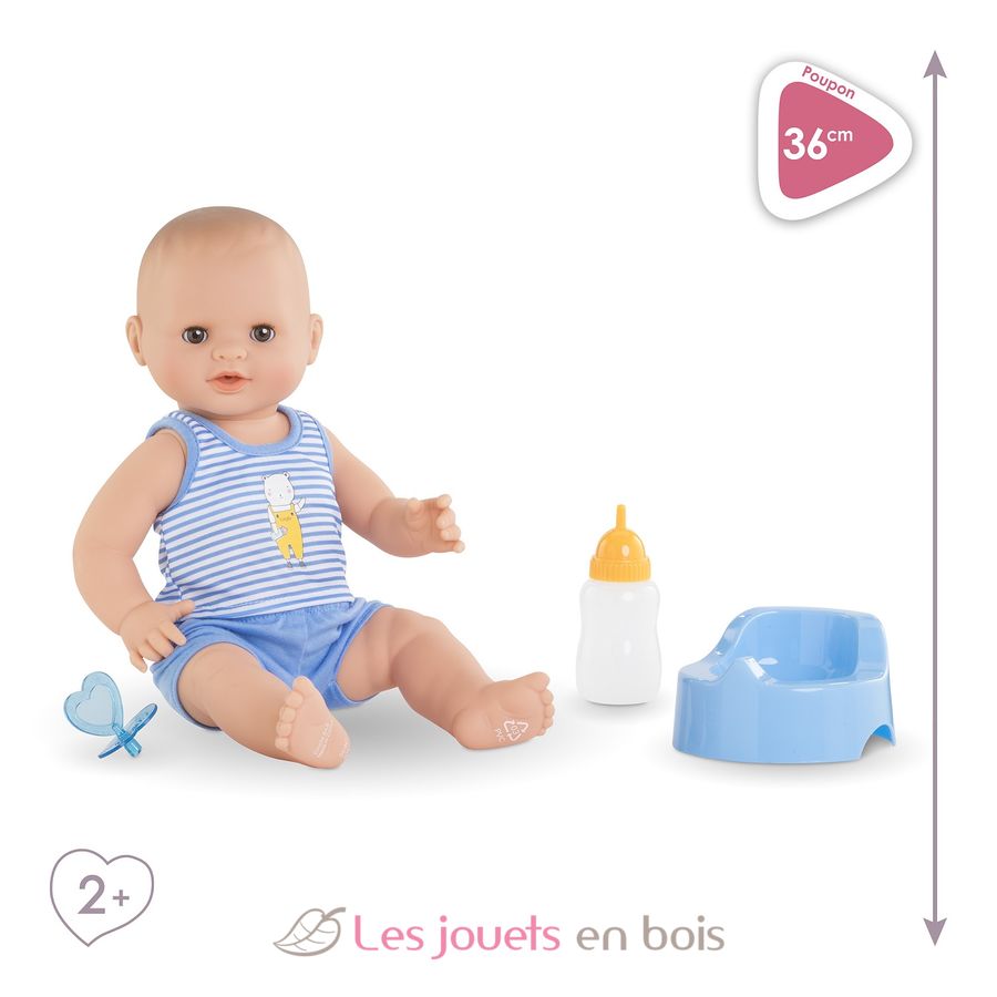 With its 3 included accessories (potty, bottle, and pacifier), this large 36 cm gender-specific boy doll: