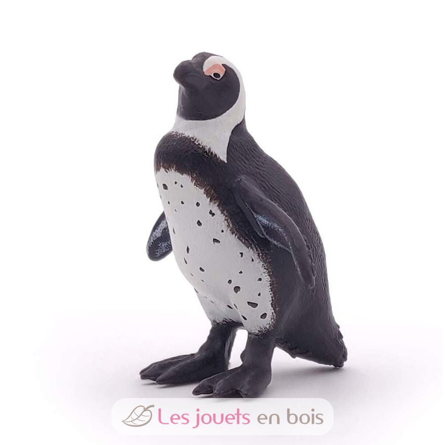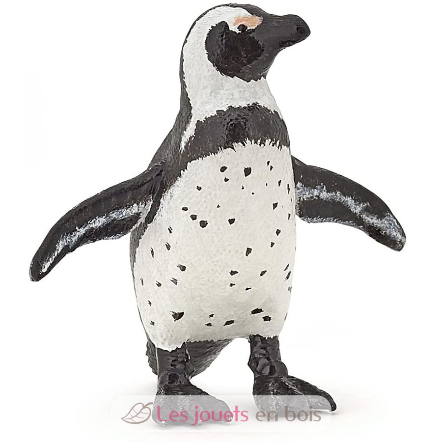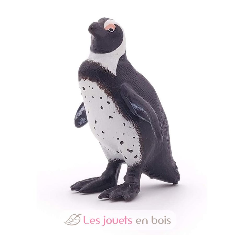 The Cape Penguin is recognizable with its white belly studded with small tasks, a real fingerprint. PAPO has recreated a short, stiff and black plumage on the back of the figurine and even the pinkish glands above the eyes allowing to regulate its body temperature. Featuring thick feet webbed, the "Black-footed Penguin" is unable to fly: its wings cut in "false" it serve to propel itself under water. Small anecdote: Renowned noisy, some compare his bracing with the cry of a donkey ...