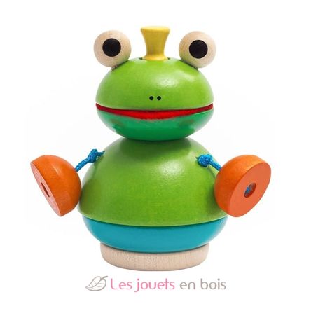 Pepito - stacking frog, a wooden stacking toy with flexible stick made by Selecta, ref 1730.