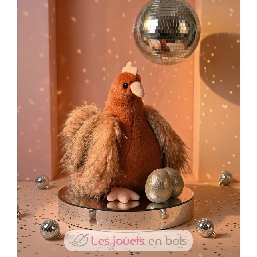 Plush My hen with golden eggs 28 cm, a plush made by Histoire d'Ours. Comes with two golden eggs that can hide in its belly.