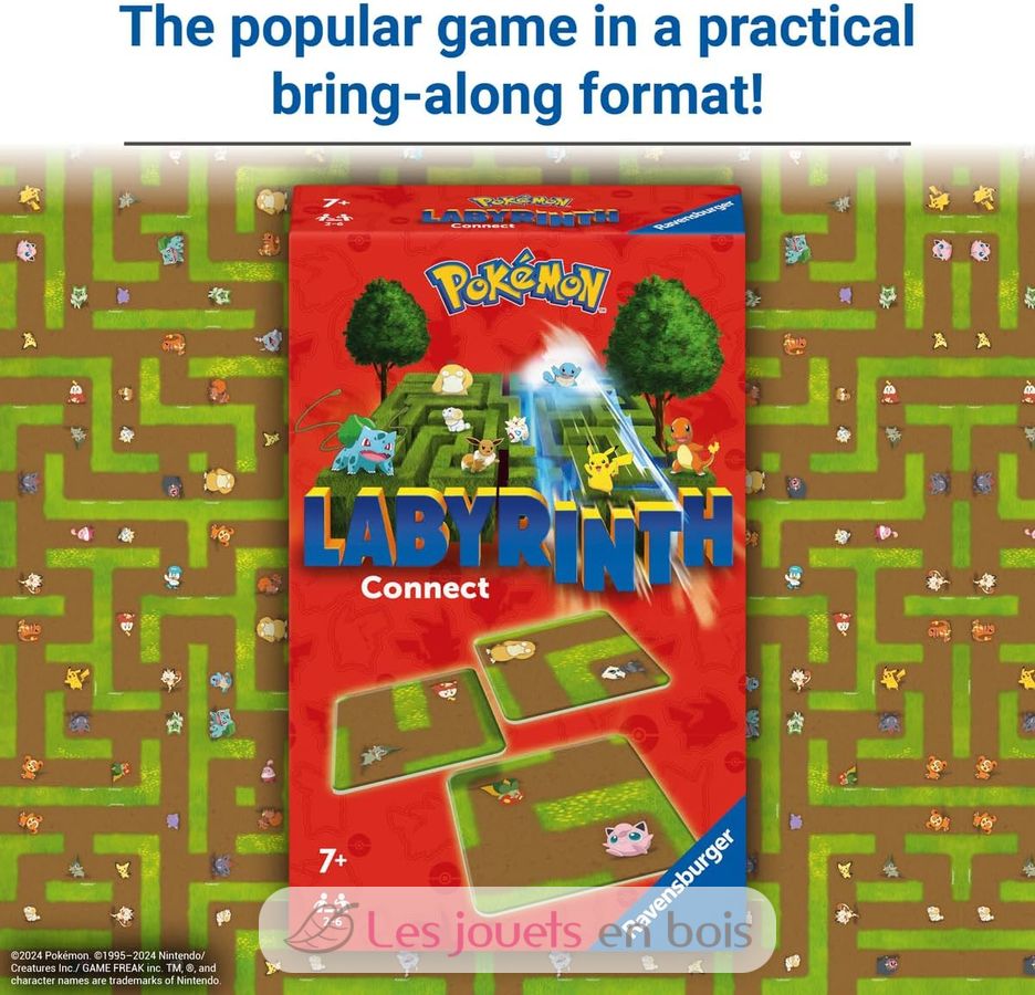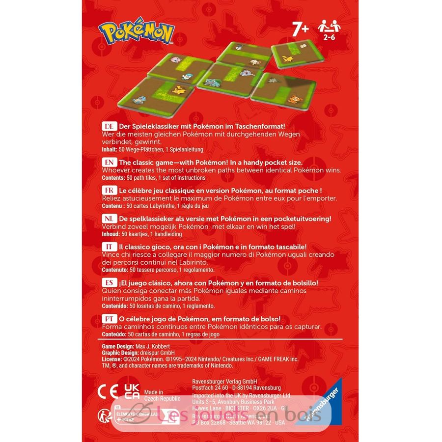The game is very simple. On your turn, add a card from your hand to the maze by extending the path of one of the cards already placed. If this creates an uninterrupted path between two identical Pokémon, you win the card with that Pokémon that was already in the maze. Whoever has the most cards at the end of the game is declared the winner! After a few games, children can even play together without adult help. With its small size, you can slip Labyrinth Pokémon Connect into a small bag and take it anywhere, even when traveling.
