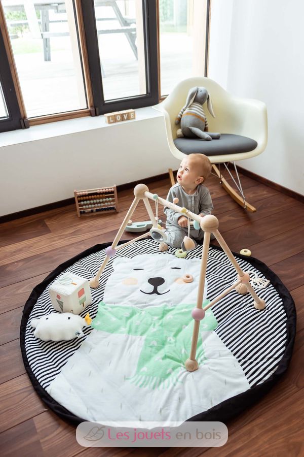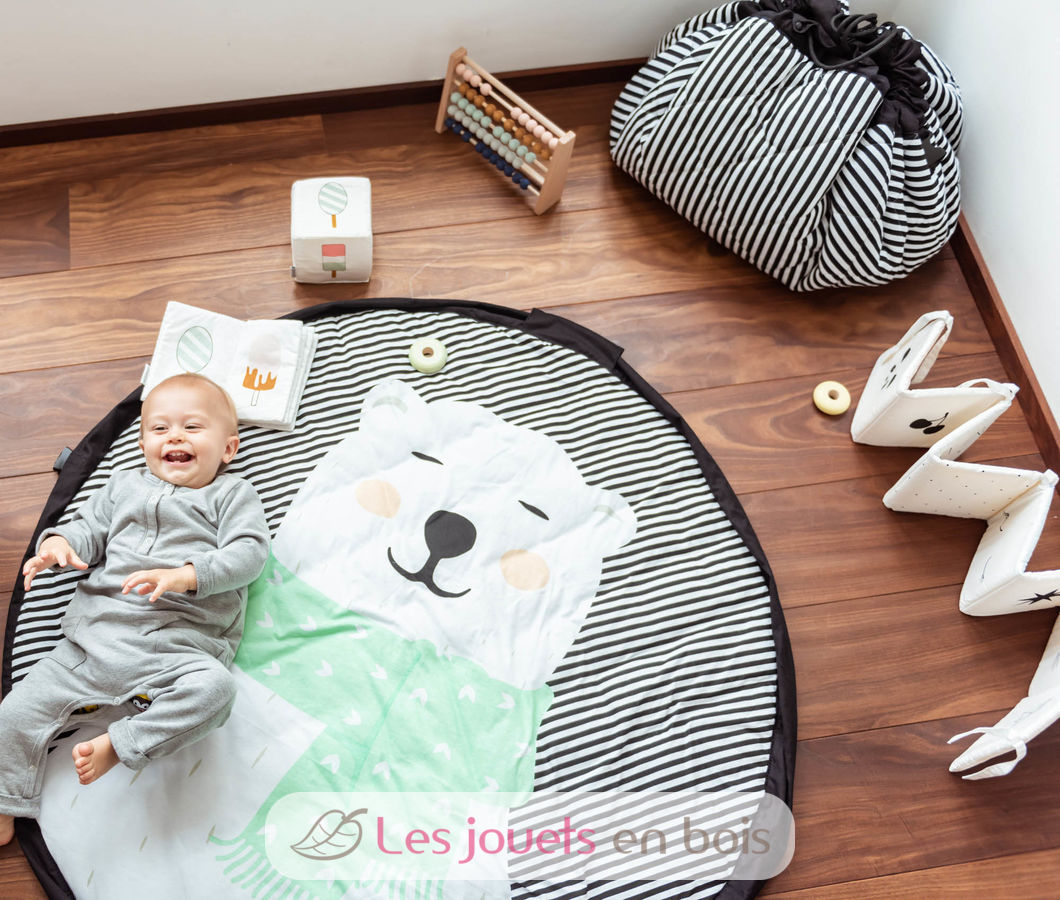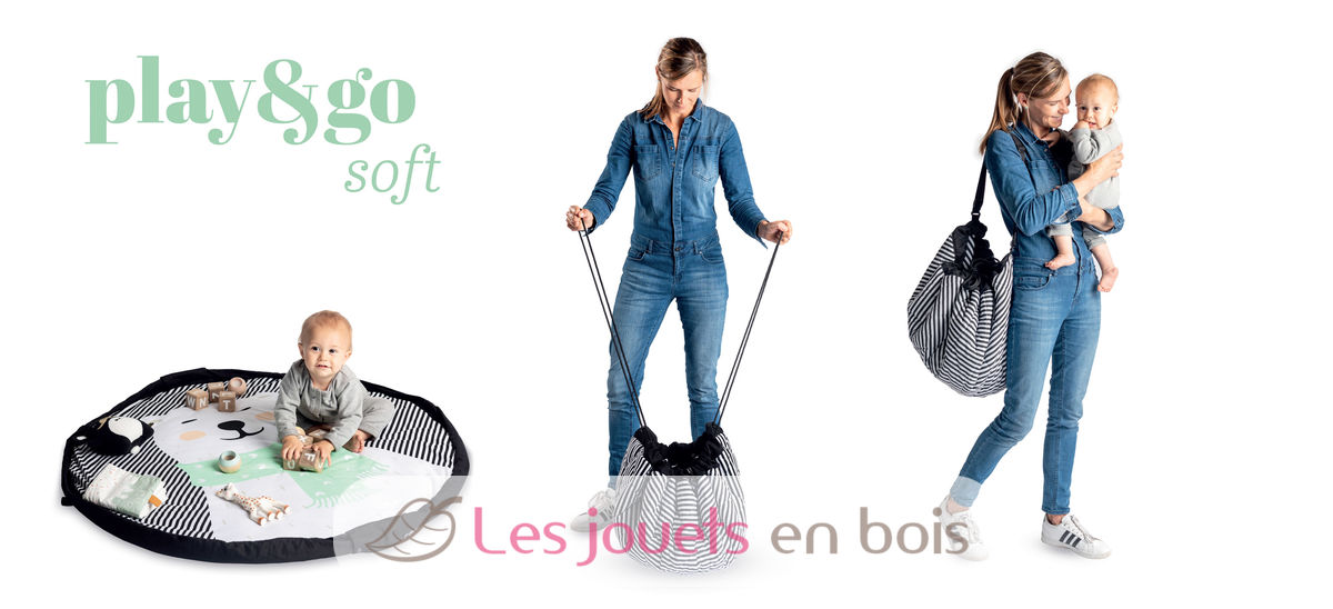 Discover the ultimate 3in1 Polar bear soft line from Play&Go. This Soft collection that combines baby play mat, toy storage bag, and convenient diaper bag, certainly a must-have baby accessory. The collection features an animal theme that quickly wins over the hearts of both mothers and little ones alike. The unique 3 in 1 playmat is made of high-quality soft jersey cotton which is near-impossible not to love. It is a full 120 cm in diameter and features a removable shoulder strap, allowing it to be carried on the shoulder or attached to a baby stroller depending on need and preference. The inside features baby-fun animals the peacock, polar bear, penguin, and lama, while the outside displays four mom friendly, attractive, choices. Overall a win-win for both ends of the family. Play&Go has been sure to make the product baby-safe, with a cotton flap cover that makes sure a baby is not able to access its rope. Machine washable 30 ° C.