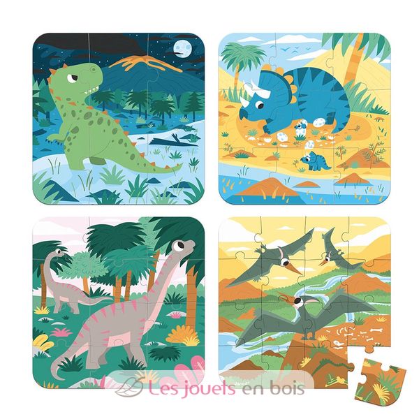 4 progressive puzzles Dinosaurs made by Janod. Item number J02541.