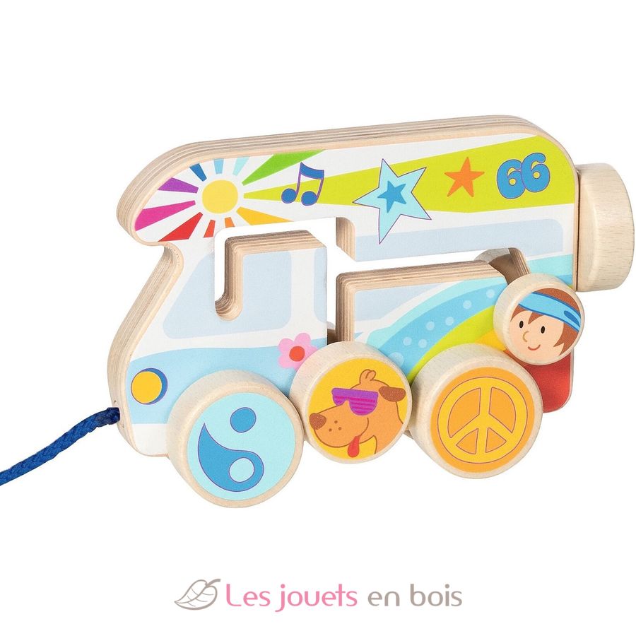 Made from high-quality wood, this camper van pull-along toy is not only fun to play with, but also stimulates the imagination of youngers.
