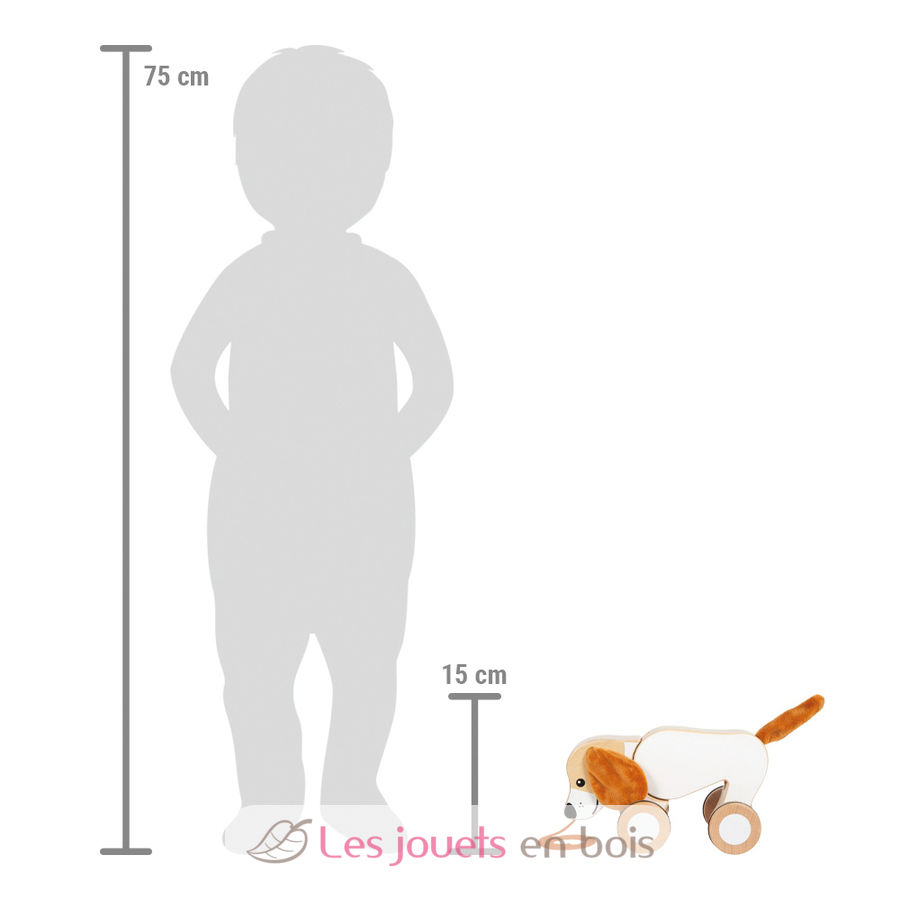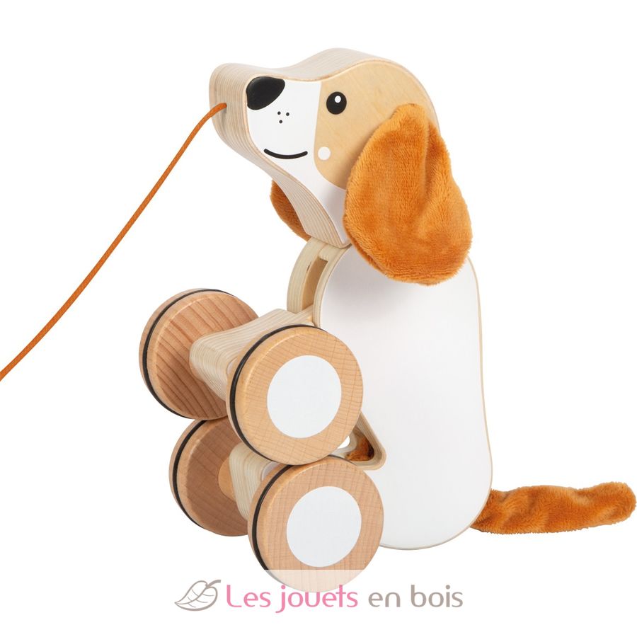 Here comes young novice walkers' best friend! This cute wooden pull-along dog with fluffy, crinkly ears is the ideal companion for young explorers taking their first steps.