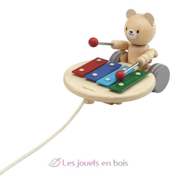 Pull Along Musical Bear, a wooden pull along toy made by Plan Toys. Item number PT5271.