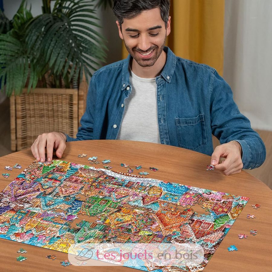 This box contains a puzzle of 1000 pieces. For trained puzzlers, the 1000 piece format is ideal for enjoying the puzzle activity, conducive to relaxation and relaxation. Each piece has a unique shape and allows a perfect assembly of the chosen image. Puzzle dimensions: 70 x 50 x 0,2 cm.