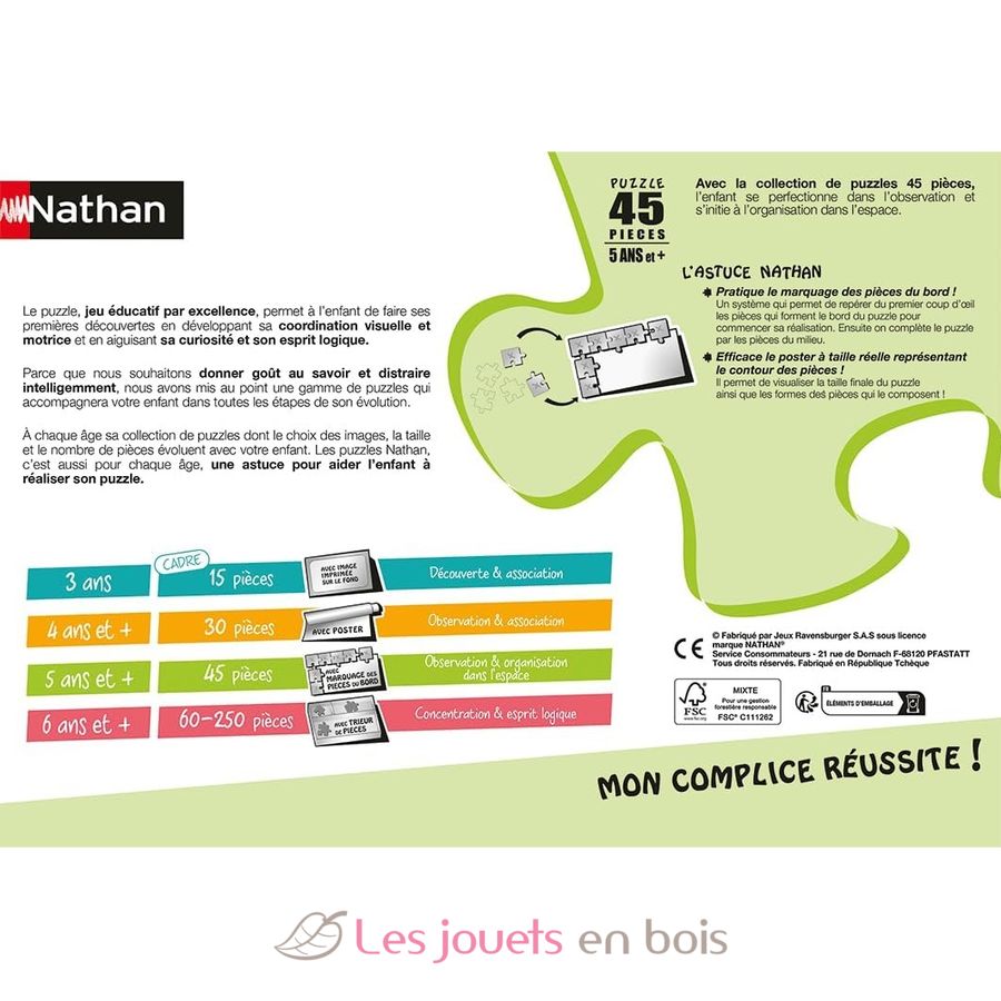 This cardboard puzzle for children aged 5 and over contains a poster serving as a model and marking of the pieces on the board. Dimensions of the puzzle: 36 x 26 cm.