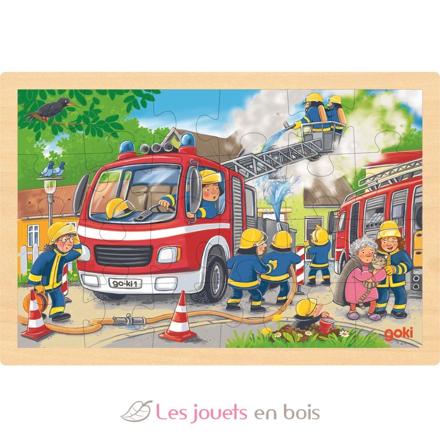 Puzzle firefighting, a wooden puzzle with 24 pieces made by Goki. Item number 57318.