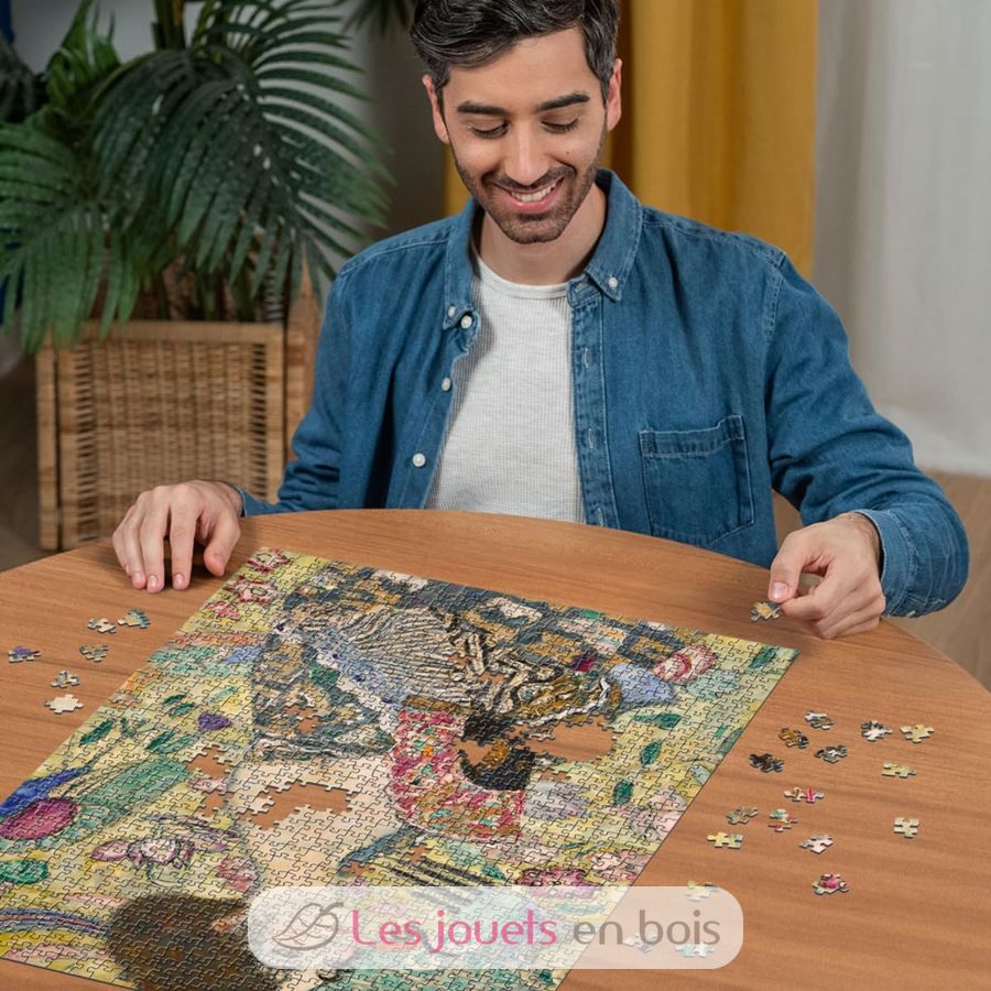 This box contains a puzzle of 1000 pieces. For trained puzzlers, the 1000 piece format is ideal for enjoying the puzzle activity, conducive to relaxation and relaxation. Each piece has a unique shape and allows a perfect assembly of the chosen image. Puzzle dimensions: 70 x 50 x 0,2 cm.