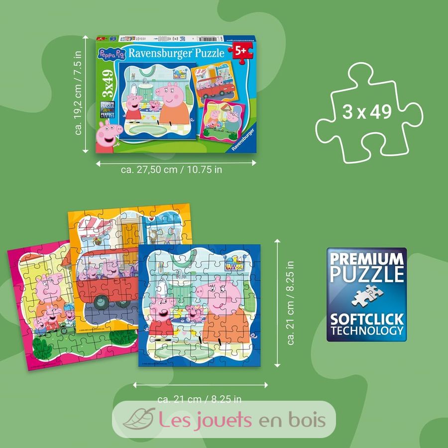 Puzzle Peppa Pig Family Firsts 3x49 pcs made by Ravensburger.
