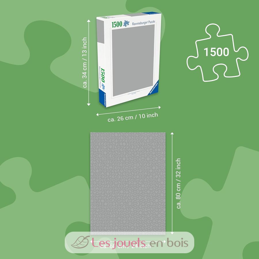 This box contains a puzzle of 1500 pieces. For trained puzzlers, the 1500 piece format is ideal for enjoying the puzzle activity, conducive to relaxation and relaxation. Each piece has a unique shape and allows a perfect assembly of the chosen image. Puzzle dimensions: 80 x 60 x 0,2 cm.
