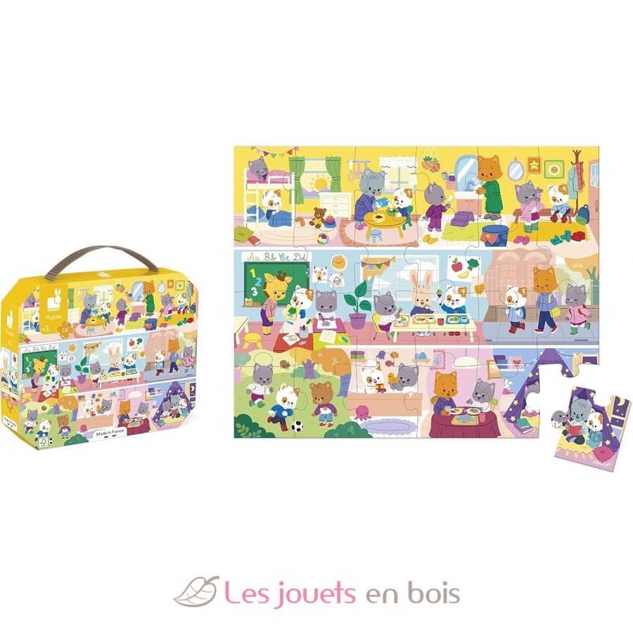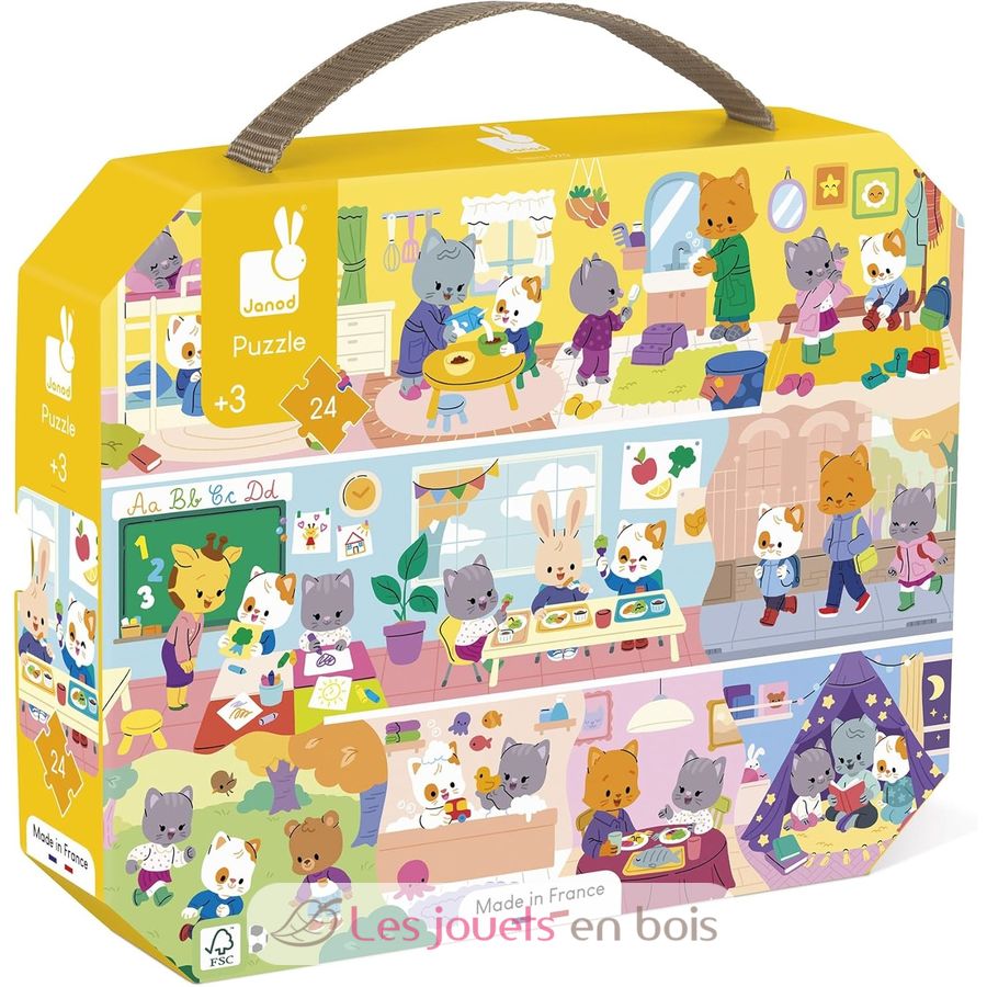 A pretty suitcase containing 24-piece cardboard puzzle based on everyday rituals theme. Poster included. Puzzle: 50 x 40 x 0,2 cm.