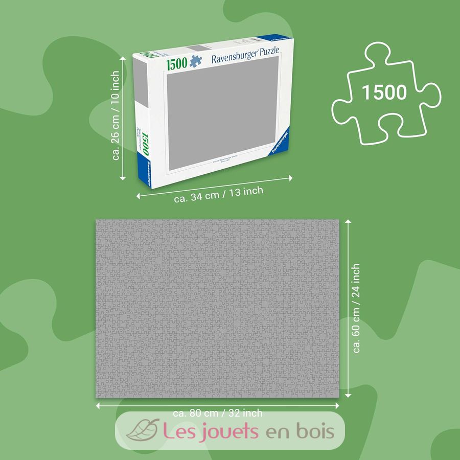 This box contains a puzzle of 1500 pieces. For trained puzzlers, the 1500 piece format is ideal for enjoying the puzzle activity, conducive to relaxation and relaxation. Each piece has a unique shape and allows a perfect assembly of the chosen image. Puzzle dimensions: 80 x 60 x 0,2 cm.
