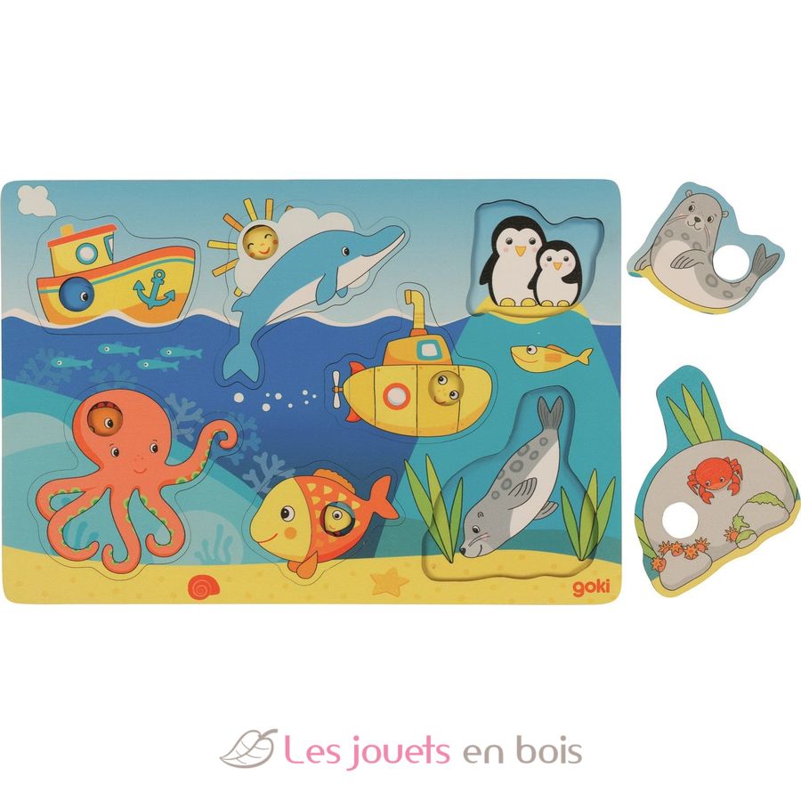 A wooden puzzle on the theme of marine animals.