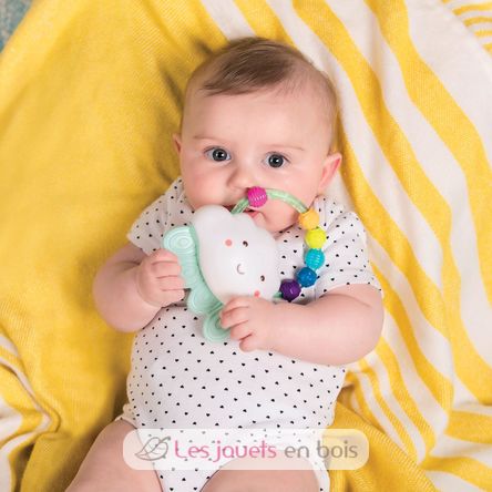 Shake the cloud to make it glow. Textured raindrops, perfect for baby’s chewy needs. Easy to grab handle, with beads that rattle.