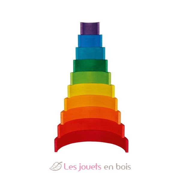Beautiful smooth solid maple wood nesting arches in the ten colours of the rainbow, with a natural finish to show the grain of the wood. The inner block is a solid 3D semicircle.
