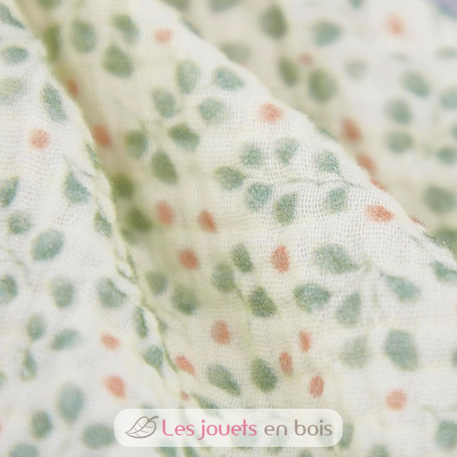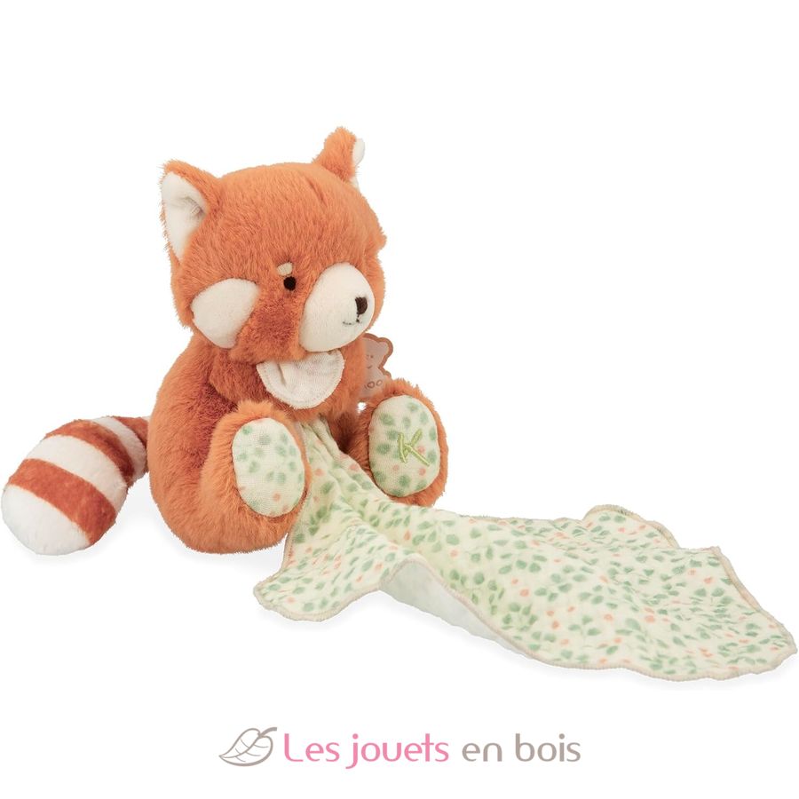 Baby will adore this soft sleep companion! This adorable red panda with its orange fur comforts and cuddles baby throughout the night, like a familiar landmark. Ready for sleep, it firmly holds its little muslin swaddle. The swaddle is a precious ally for baby's sleep: light and airy, it reinforces the bedtime ritual, offers a reassuring texture to handle, and more easily retains familiar scents thanks to its soft muslin. The pretty botanical details on the swaddle and under its paws contribute to this feeling of security and calm. Ideal from birth, this cuddly toy accompanies baby through their first nights and quickly becomes an indispensable companion. The easy-to-grasp tail offers a stimulating point of grasping for little hands.