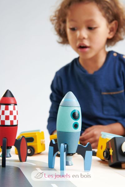 Rocket Construction, a wooden building game made by Tender Leaf Toys.