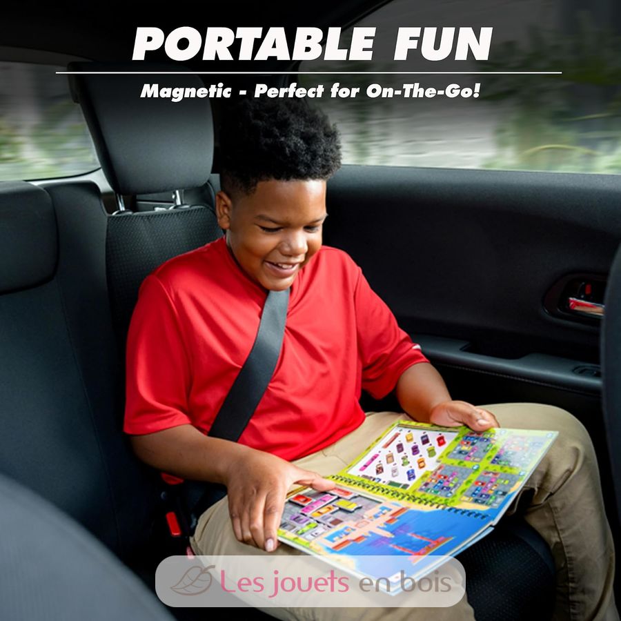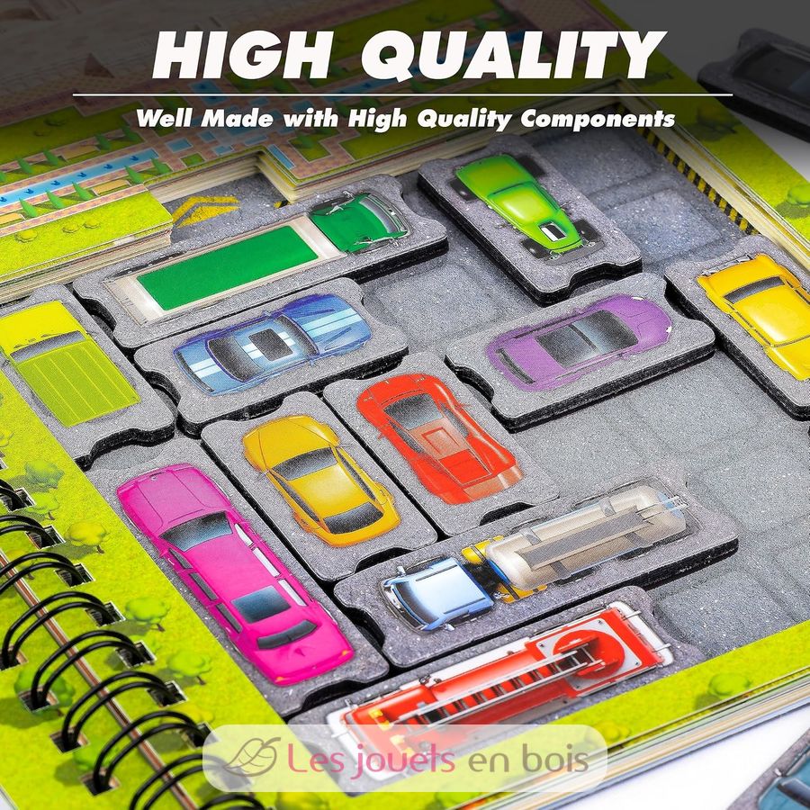 Game contents: 15 vehicles, 1 red fire engine, 1 traffic grid, 40 challenge cards with their solution, 1 interior storage, a rule of the game..