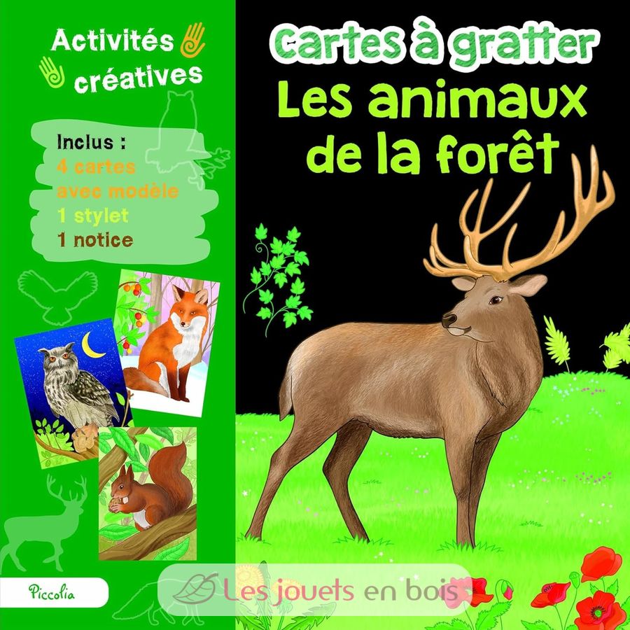 In this creative kit, find 4 cards to scratch with model, 1 stylus and and 1 instruction sheet. The set is very colourful with animals illustrations!