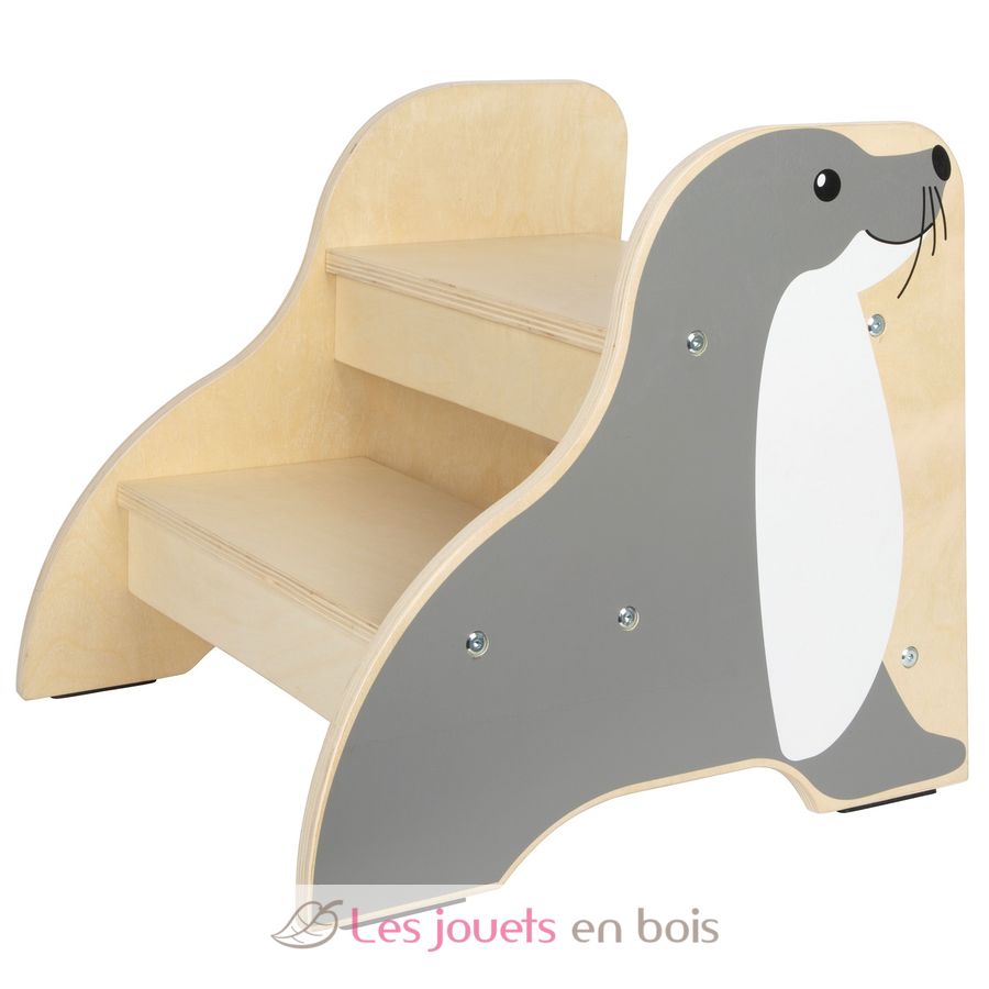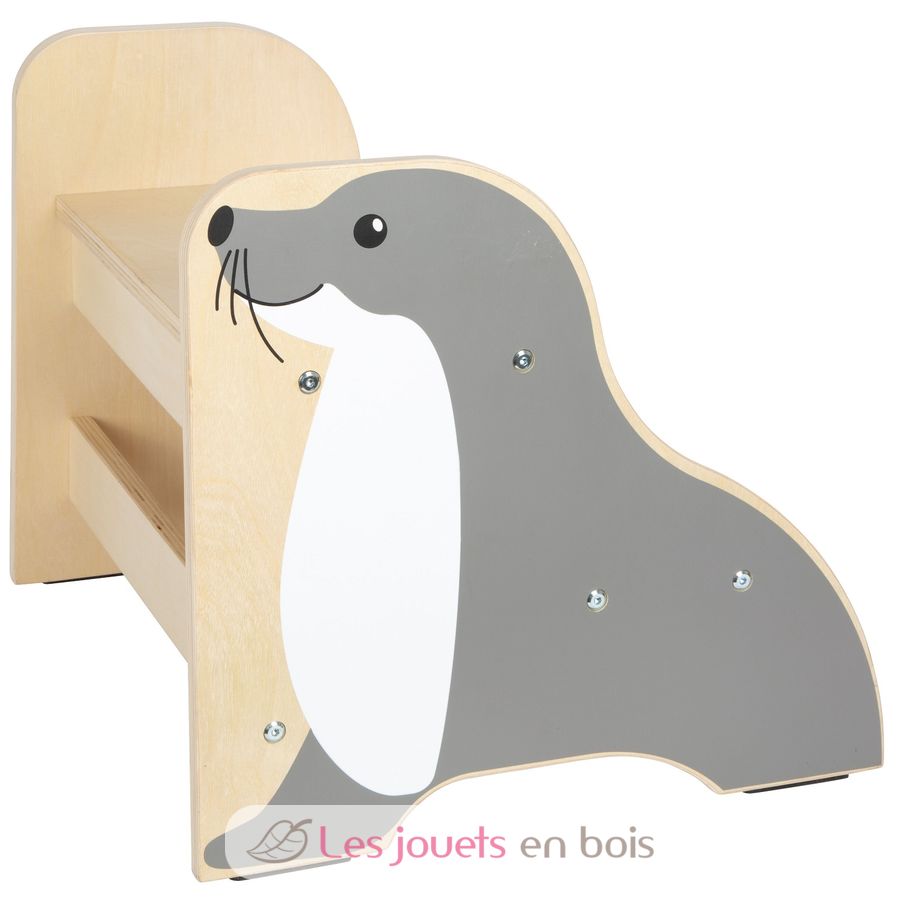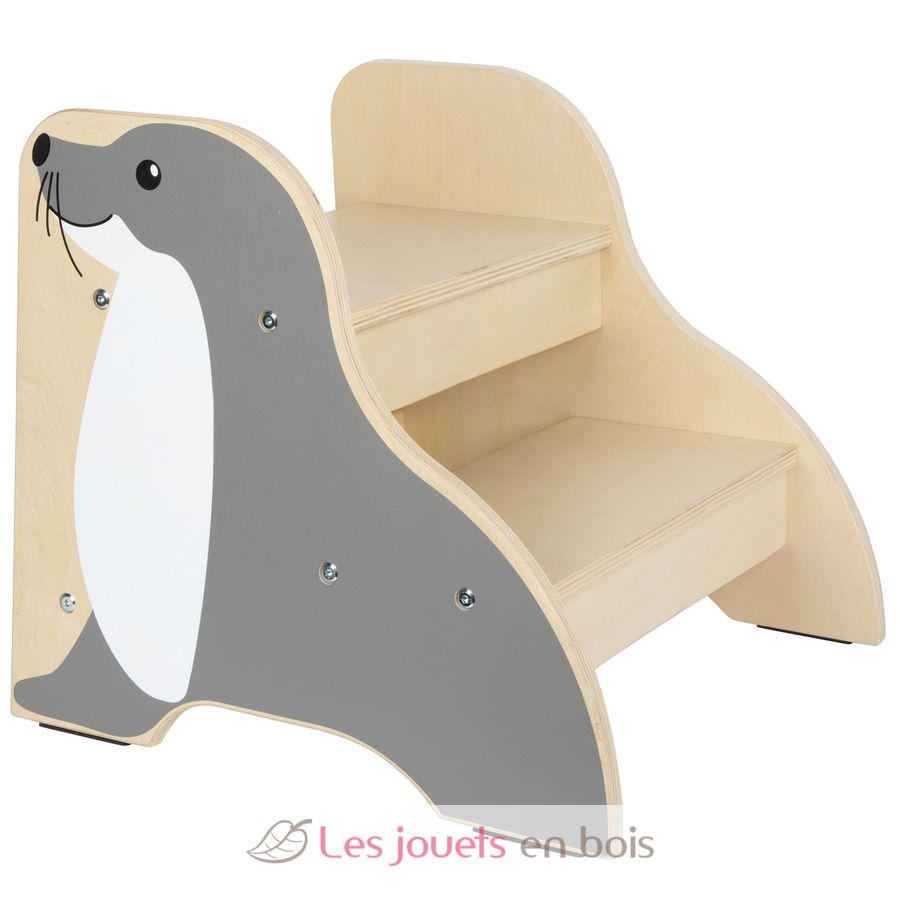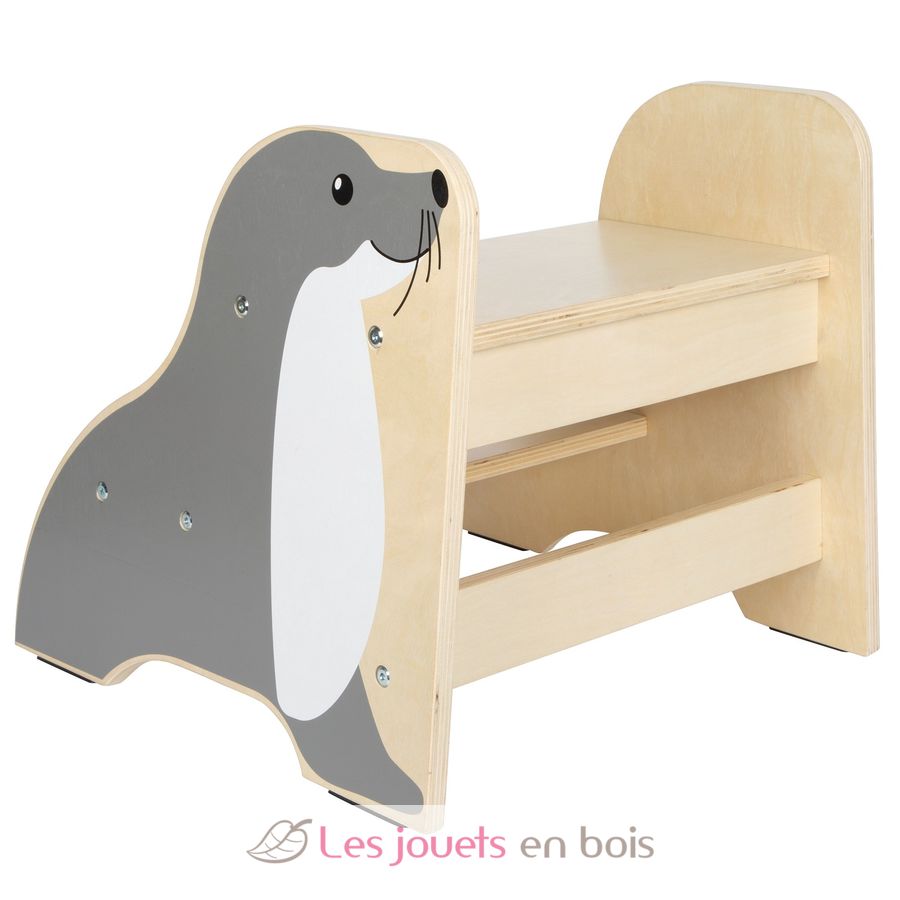 Whether brushing teeth, washing hands or helping in the kitchen - this sturdy stool makes it easier for children to access raised areas and supports them in everyday life. The lovely seal design blends harmoniously into any children's room or bathroom and gives it a child-friendly look.