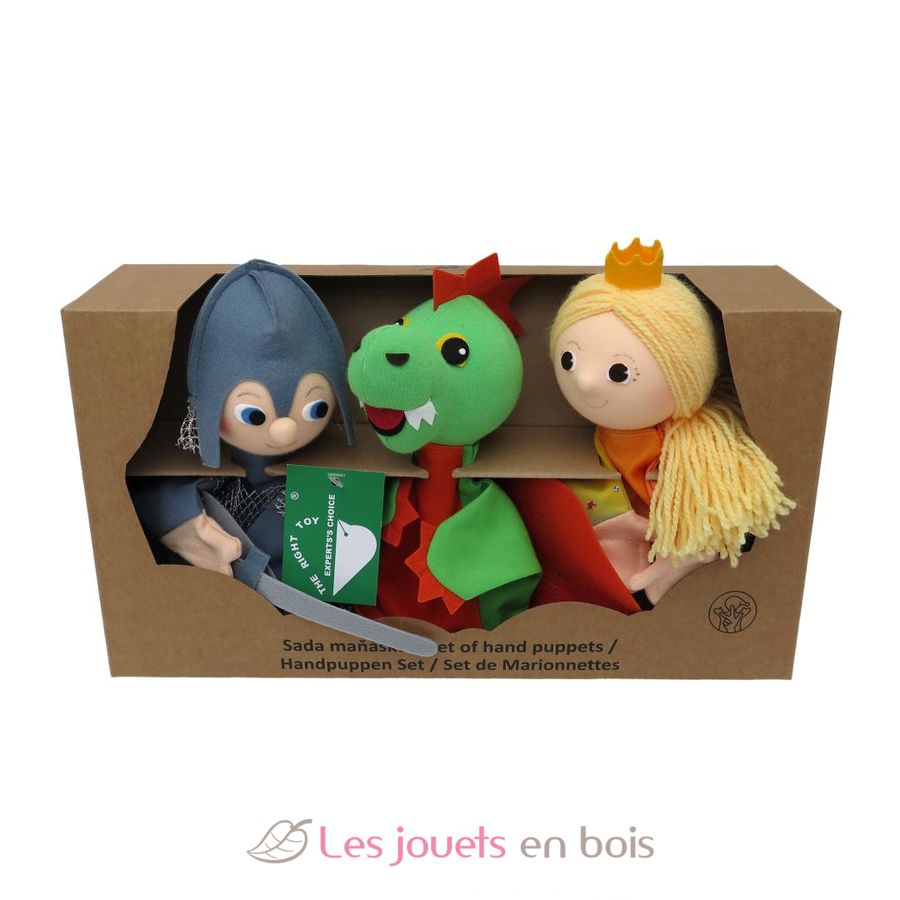 Set of 3 hand puppets on the theme of the Dragon: A Dragon, a Knight and a Princess.