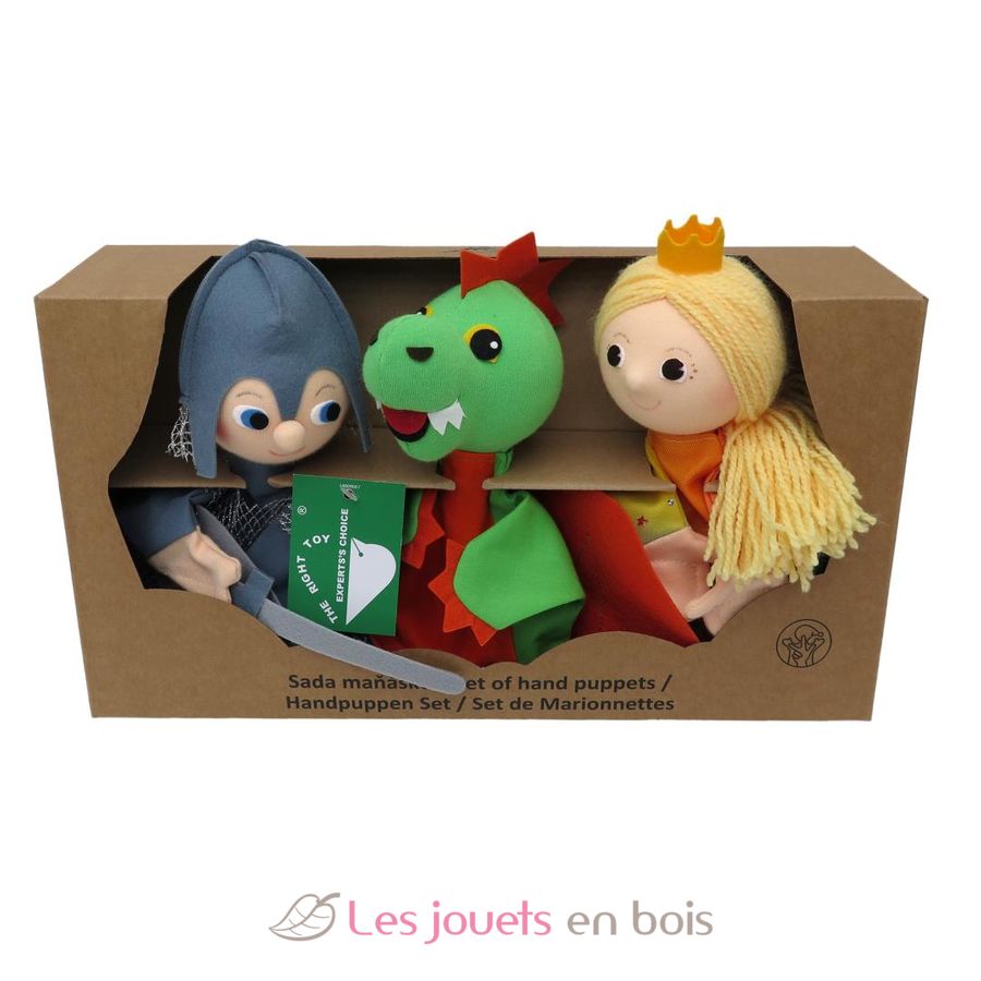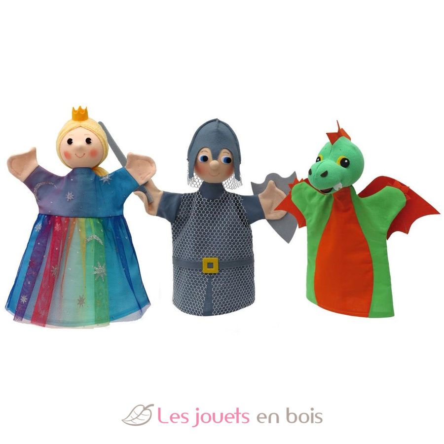 Set of 3 hand puppets on the theme of the Dragon: A Dragon, a Knight and a Princess.