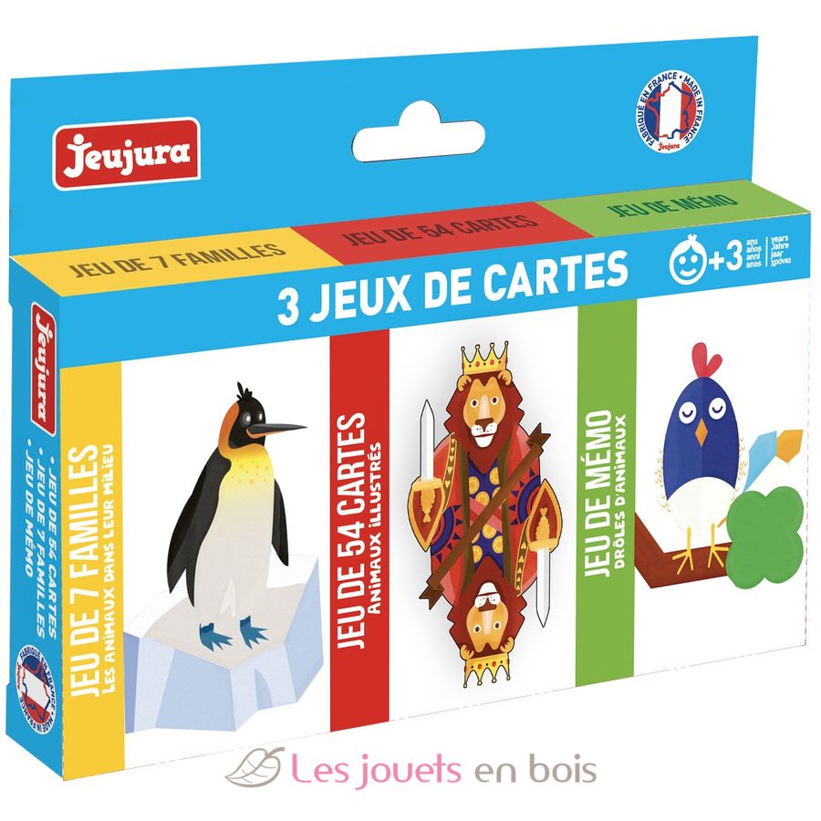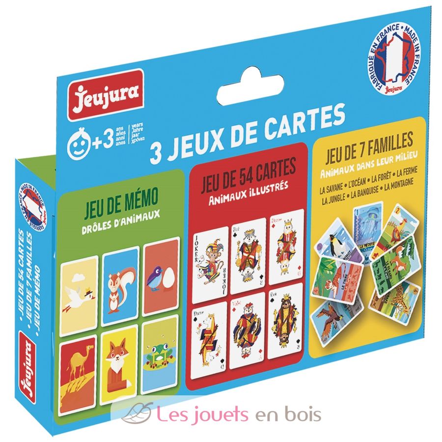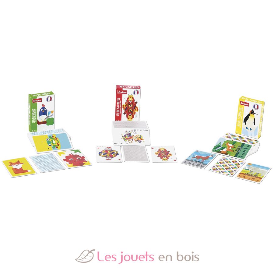 Three essential children's card games: 54-card deck, 7 Families game, and memory game.