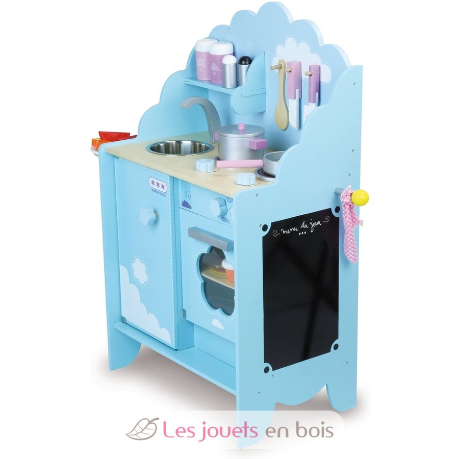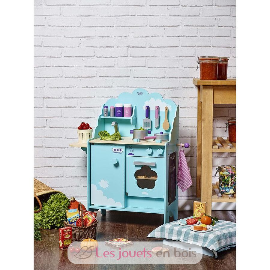 Sky blue kitchen unit, a wooden kitchen made by Vilac, item number 8107.