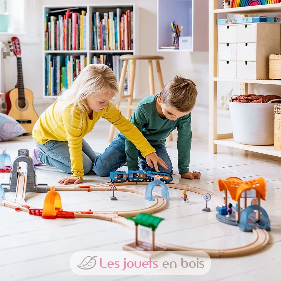 Part of BRIO World: The Action Tunnel Station is best used with the Record & Play Engine (not included) to get the full sound experience but can be used with any train or vehicle in BRIO World, connecting to a wooden track layout via both the front and back connections.