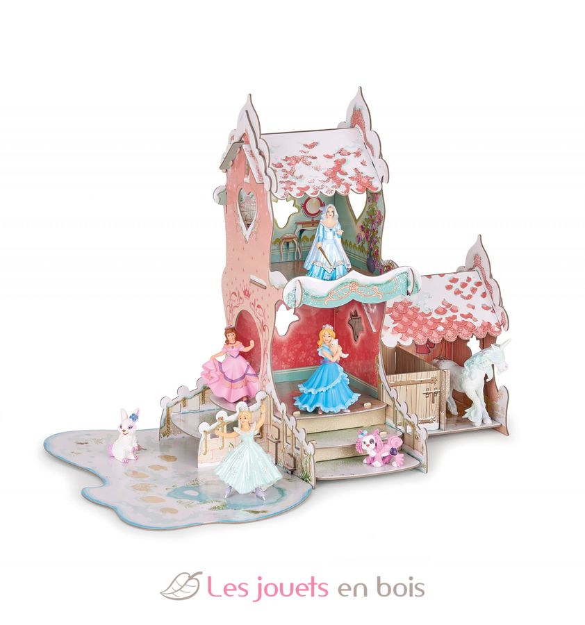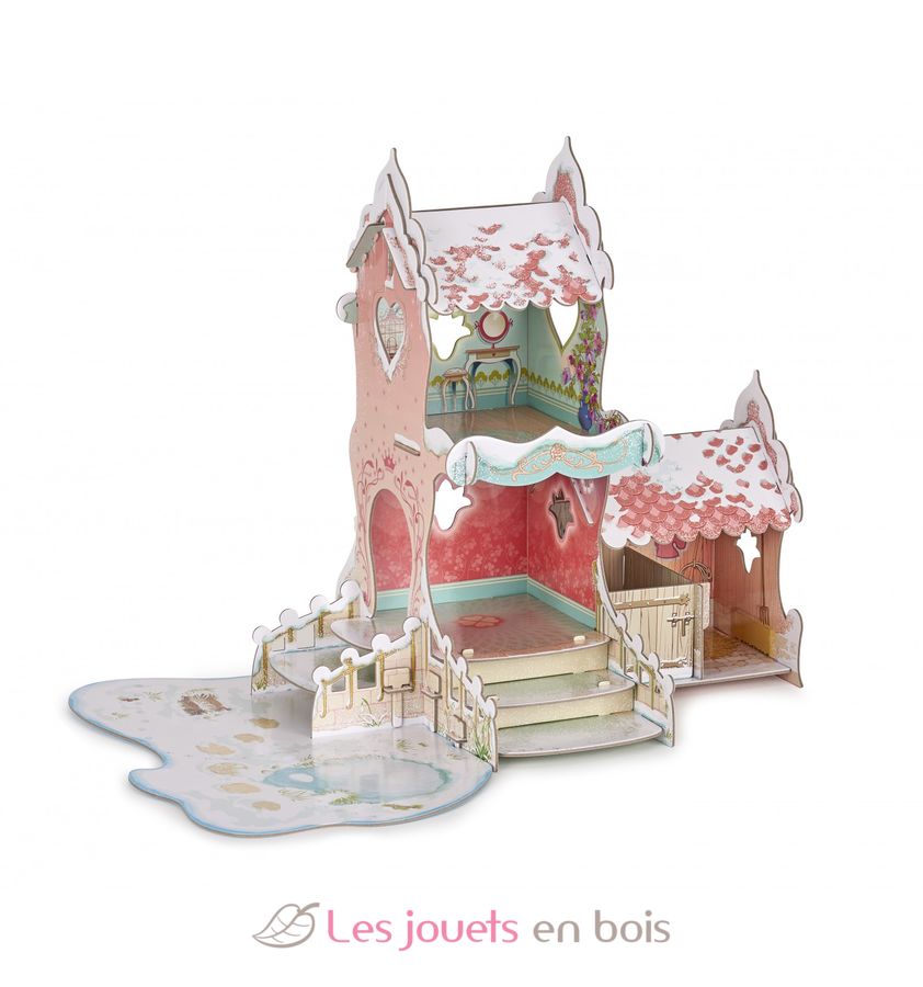 In this special winter box, Princess Isiplay's castle has been covered with snow. This playful quality cardboard environment, easy to assemble, is accompanied by two exclusive figurines; the princess and the snow wizard, offering a complete game world that will delight your child.