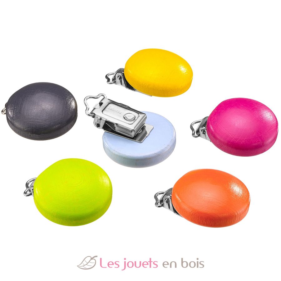 Set of 6 solid wood fixing clips, made in Germany by Selecta. Diameter 3.5 cm.
