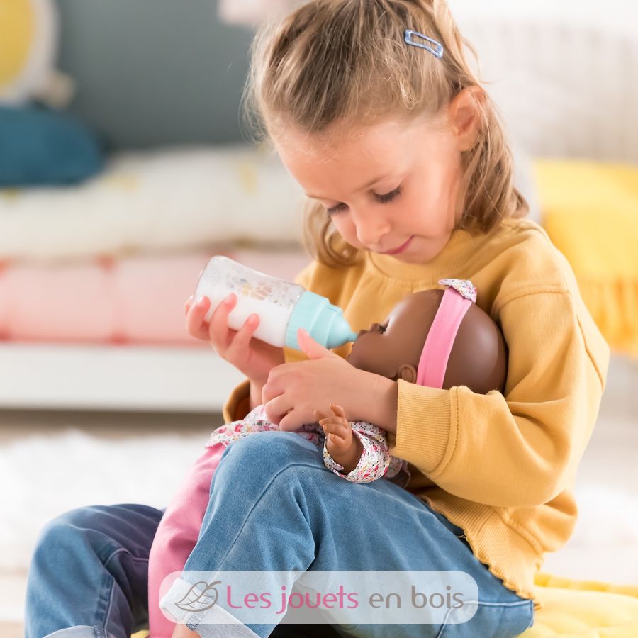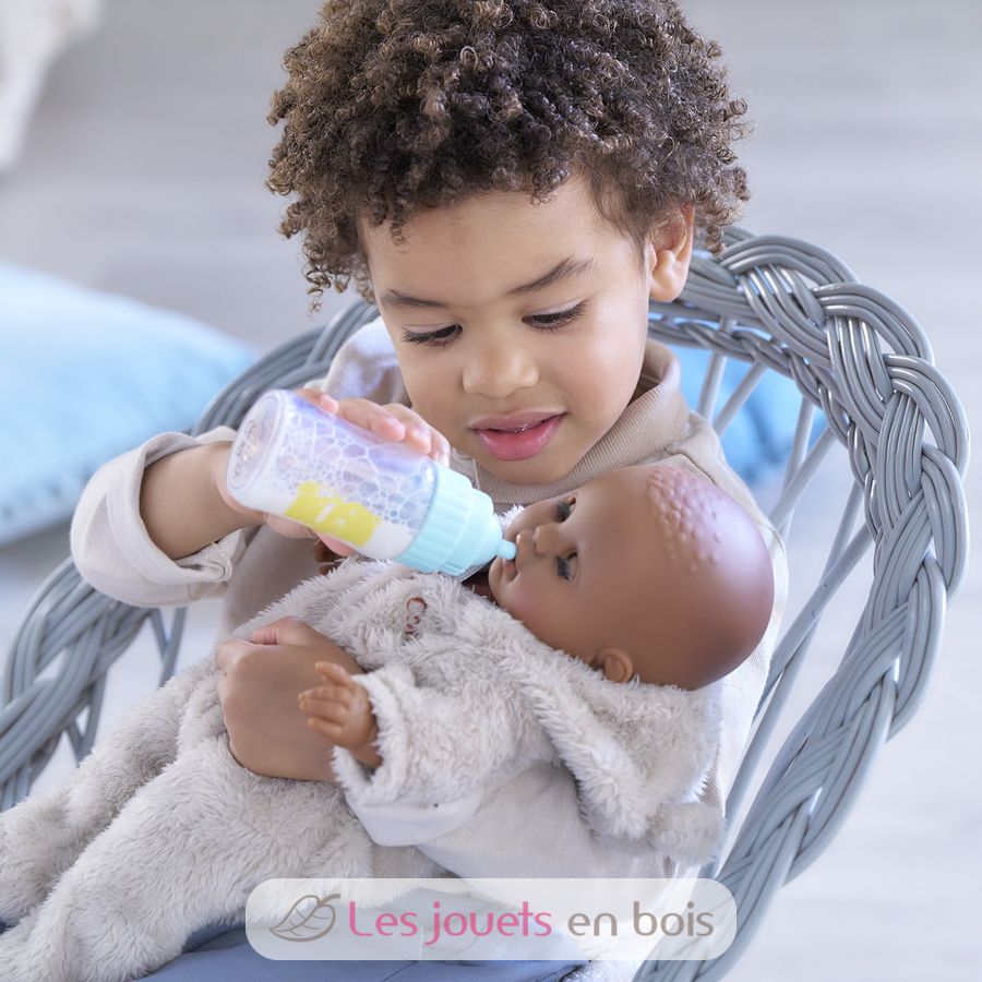 Ideal for feeding your doll, the baby's bottle has 3 sounds to vary play scenarios. Easy to use, the child can hear their doll cry, laugh, or even suck on the nipple, just like a real baby.