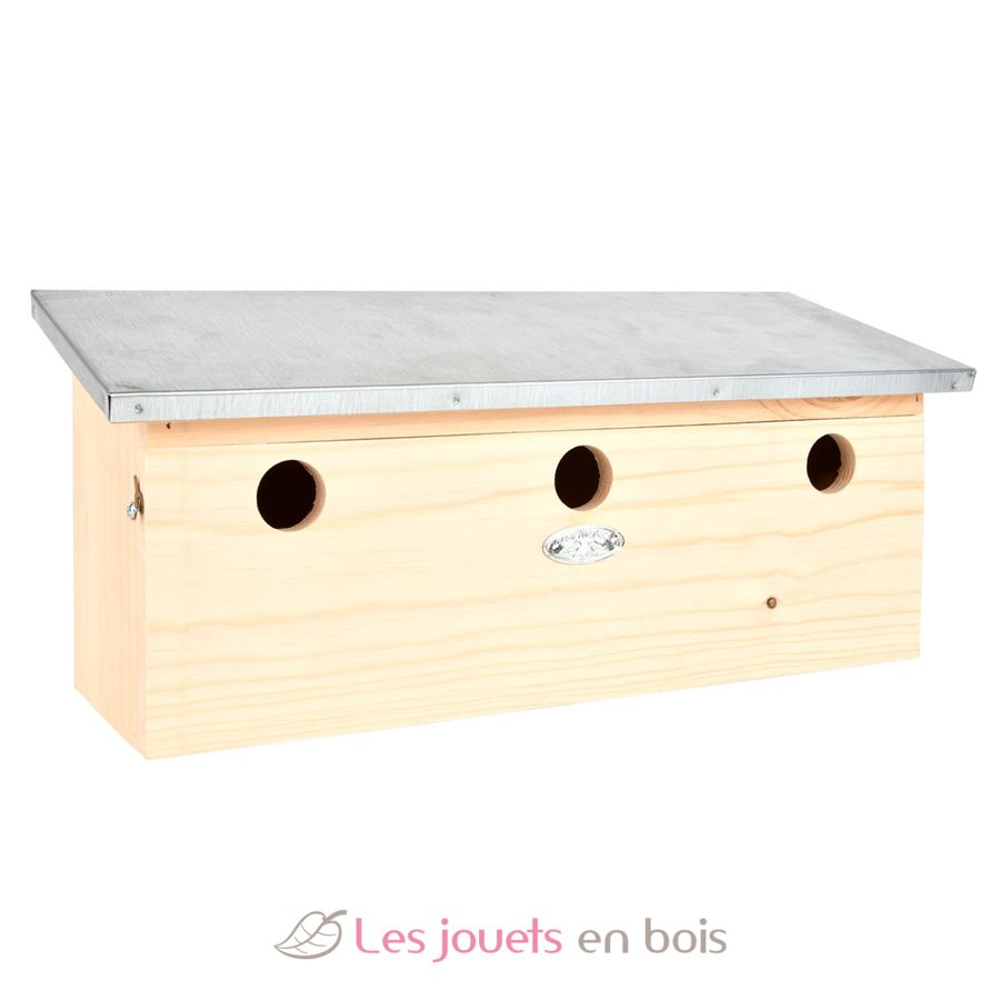 Birdhouse for sparrow with zinc roof. A wooden birdhouse made by Esschert Design - NK85.