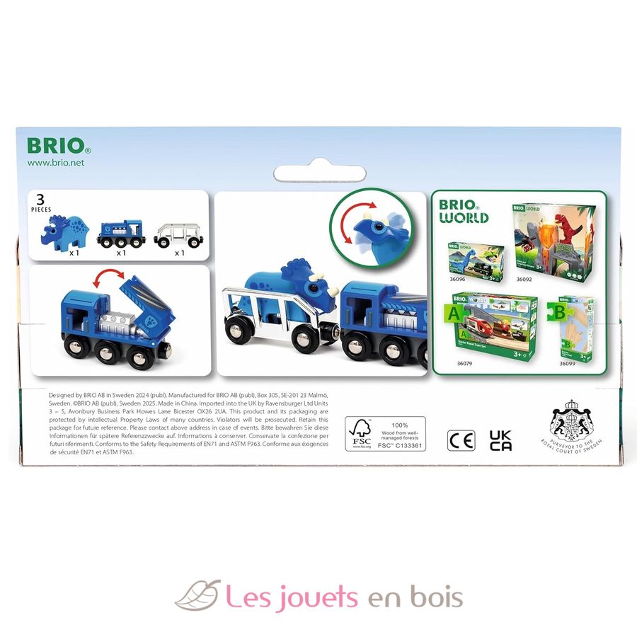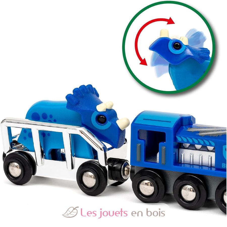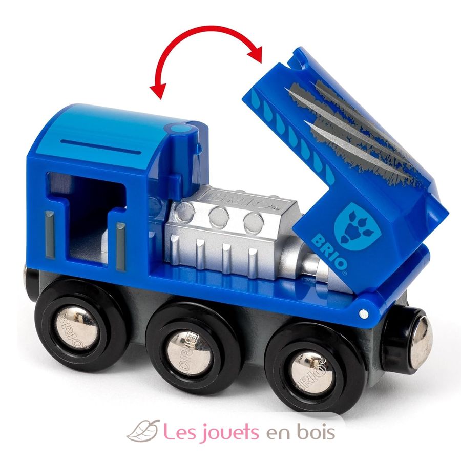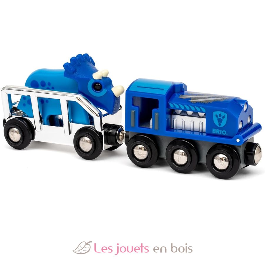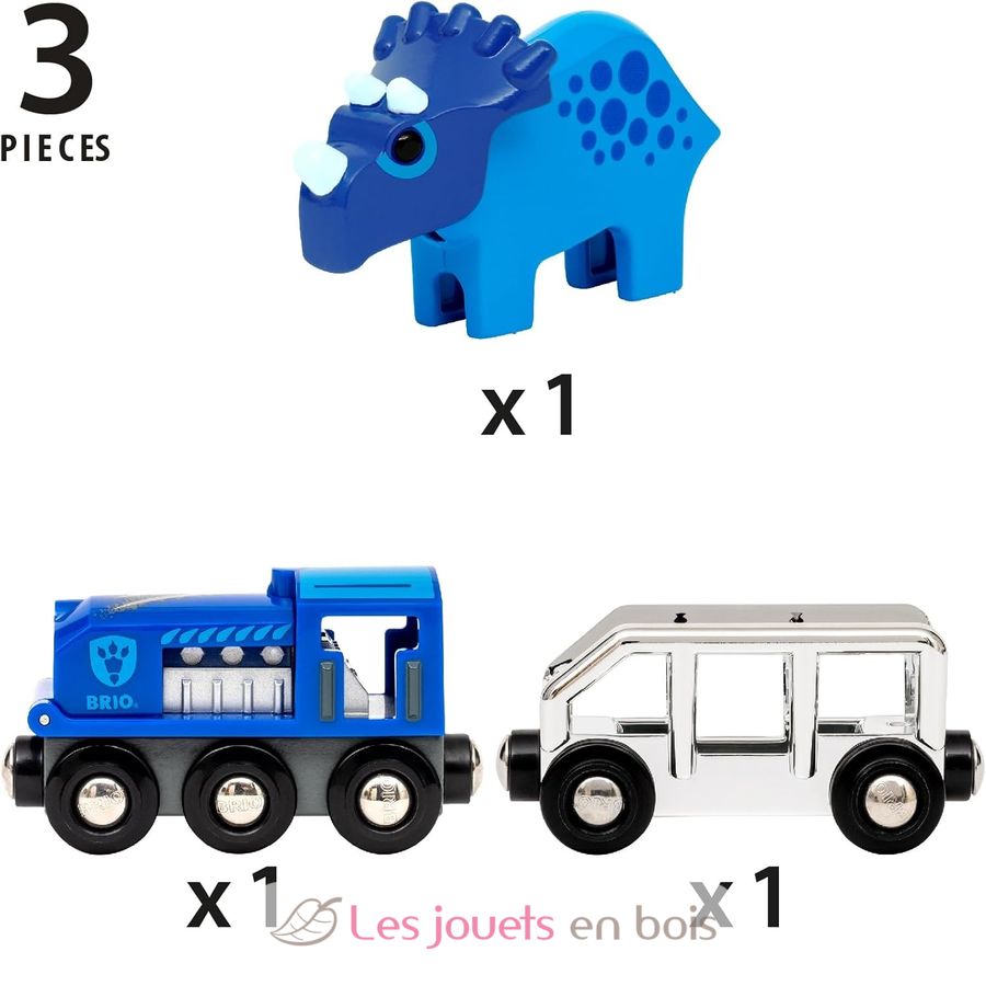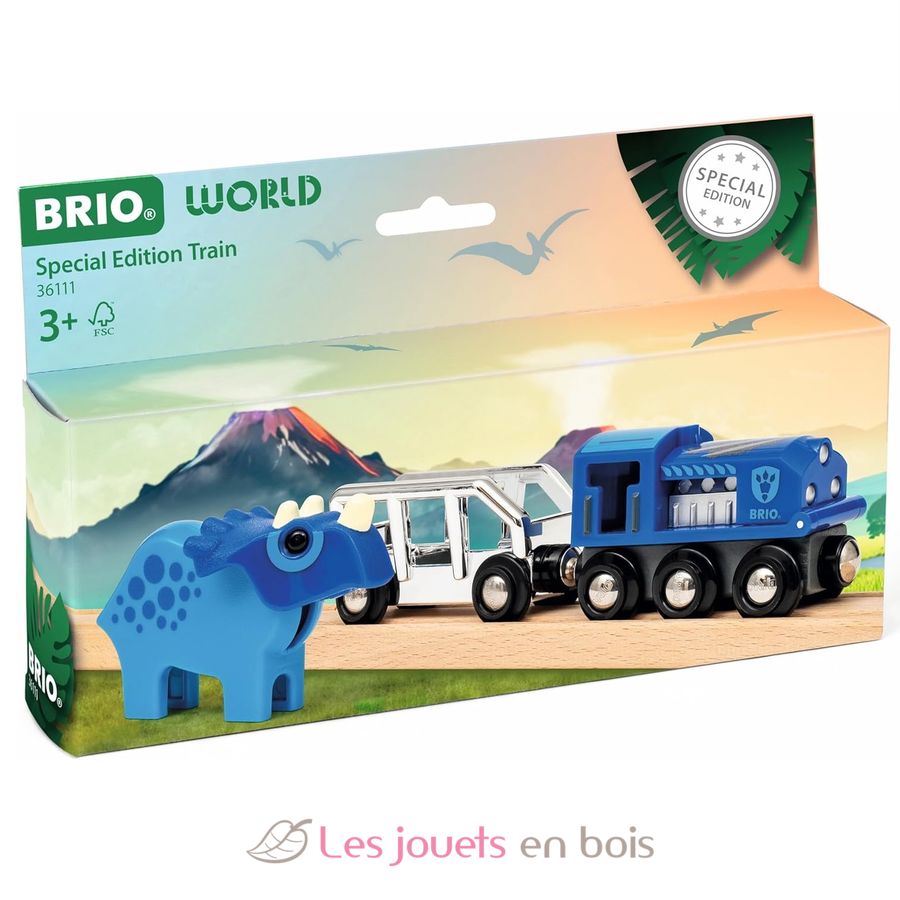 The Special Edition Train is the perfect addition to any Brio World train set. This dinosaur-themed train features a silver and blue finish and a blue triceratops figure. Open the train's hood to reveal the engine. After a few adjustments, load the car with the dinosaur and continue your journey. This limited-edition train is only available this year, so don't miss the opportunity to add it to your train set.