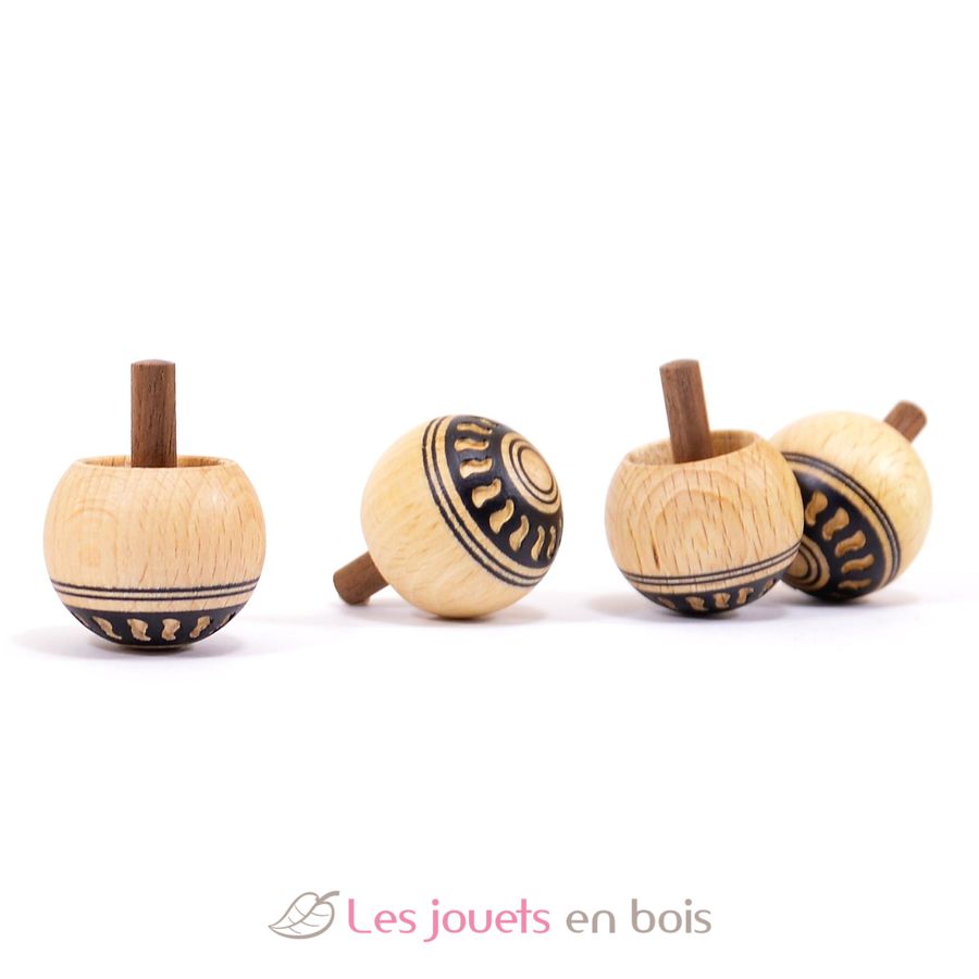 Wooden spinning top Orient 32 mm (sold individually). The particularity of this spinning top is that it turns over on the rod if it is thrown with enough speed, thus offering a fascinating spectacle!