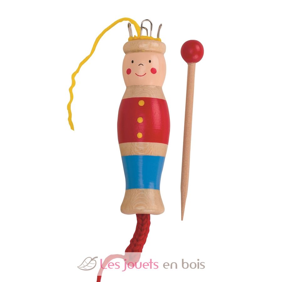 This spool knitter includes 4 wool threads (4 different colors) and a wooden needle.