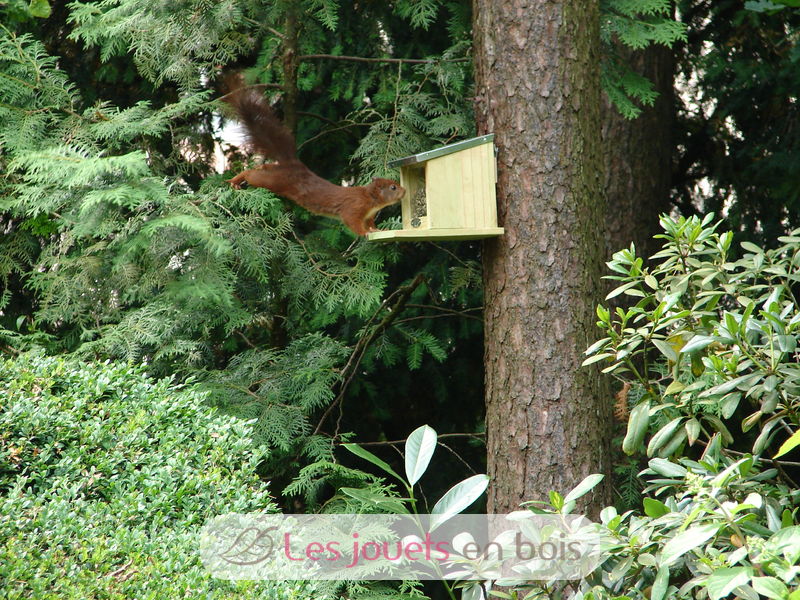 Très bien. Seul bémol, la paroi en plastique qui permet de rendre le contenu visible pour l’écureuil est un peu fine. Je vais certainement la remplacer par un morceau de plexiglass qui résistera mieux au soleil et aux intempéries.