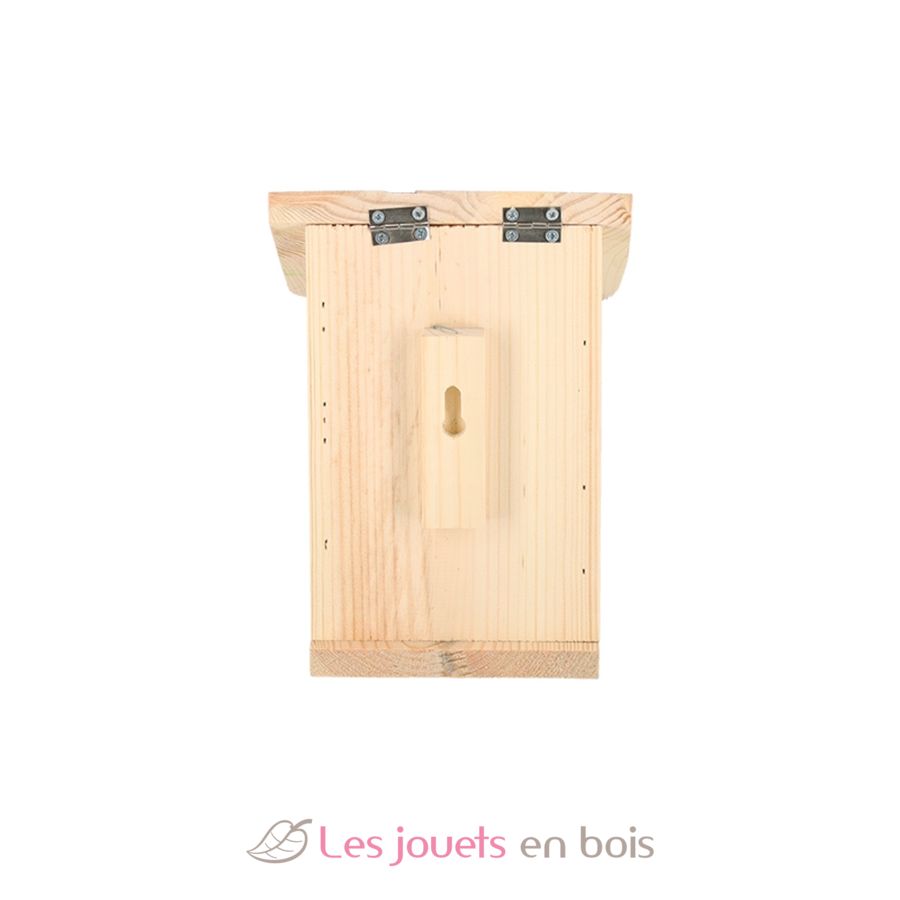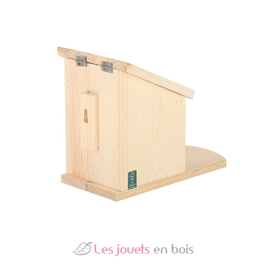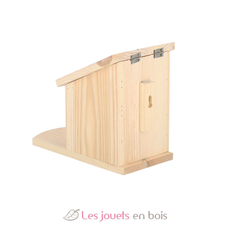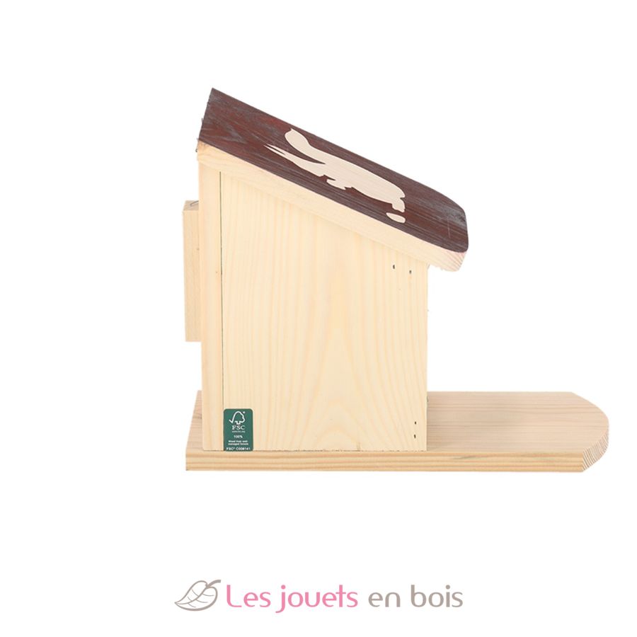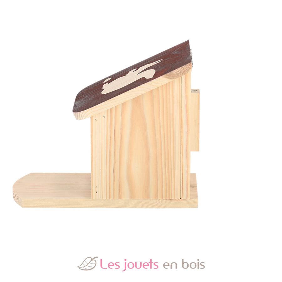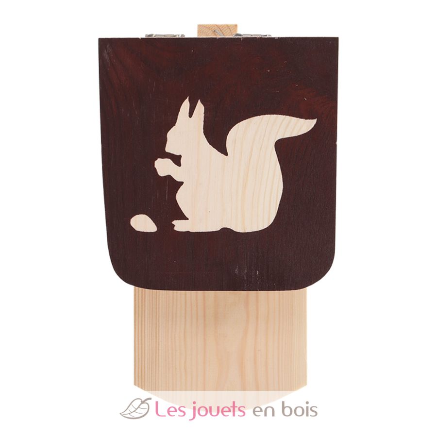 This squirrel feeder is a cute feeder made of pine wood, featuring a colorful roof with a squirrel silhouette (sold without food).