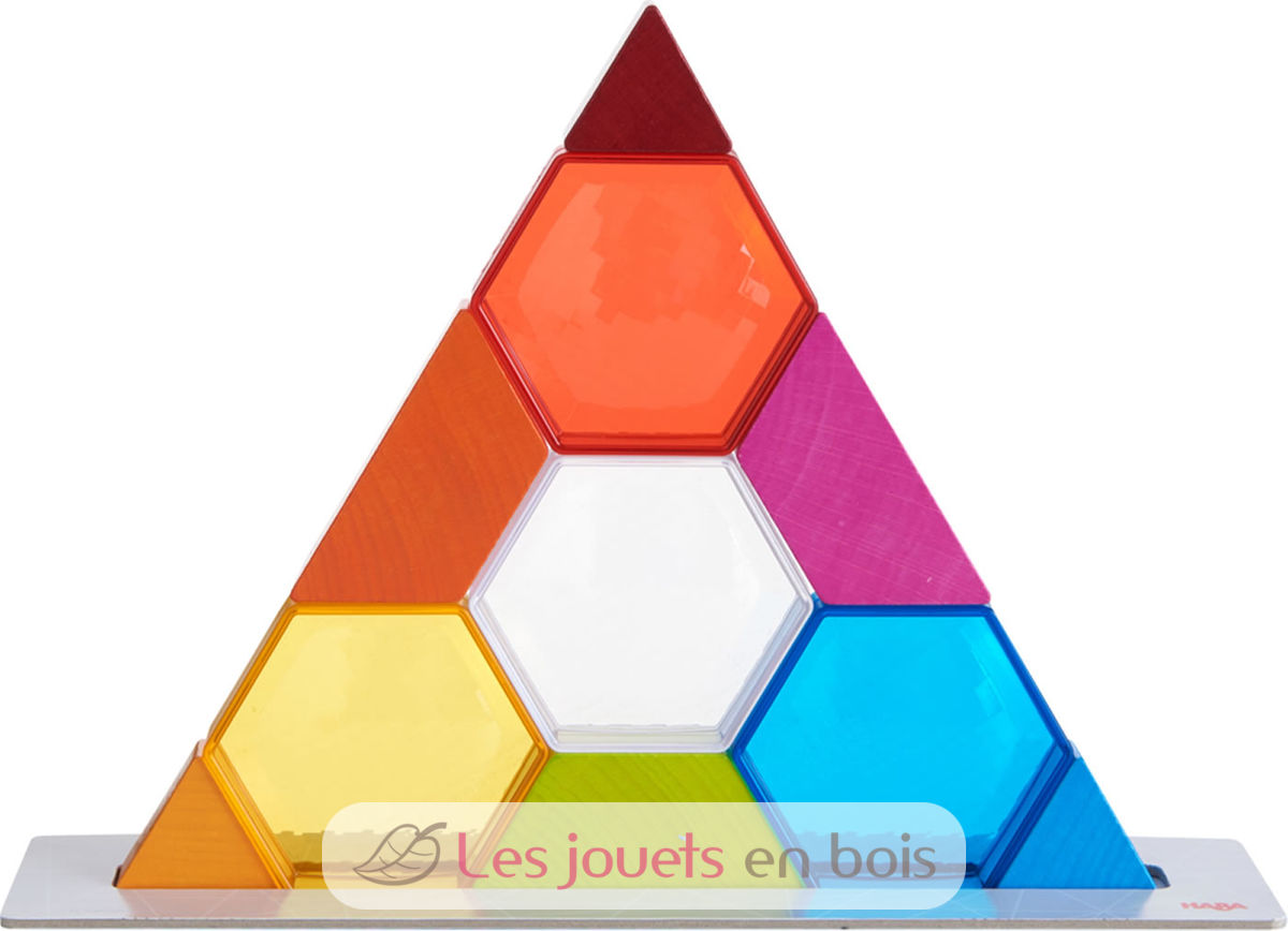 The crystal blocks can be stacked according to the child’s own color scheme or simply according to the template cards provided. This stacking game offers junior stacking artists multiple creative possibilities. The wooden blocks and prisms can be laid out flat or slotted one above the other in the stacking frame. The bright and colorful prisms and the beautiful shape of the stacking blocks guarantee long-lasting and varied fun. From 3 years old.